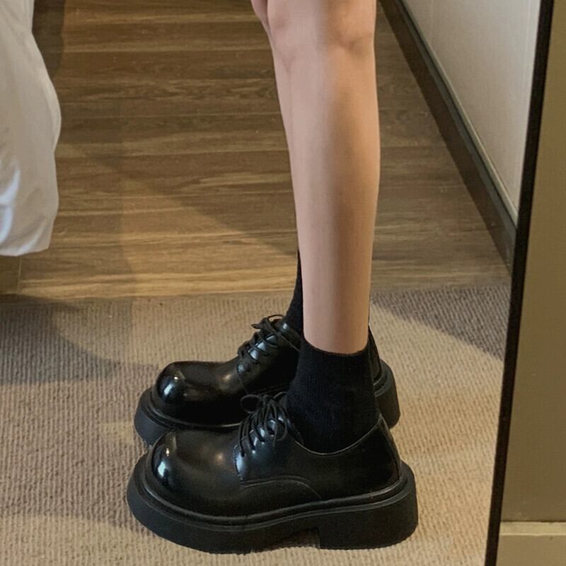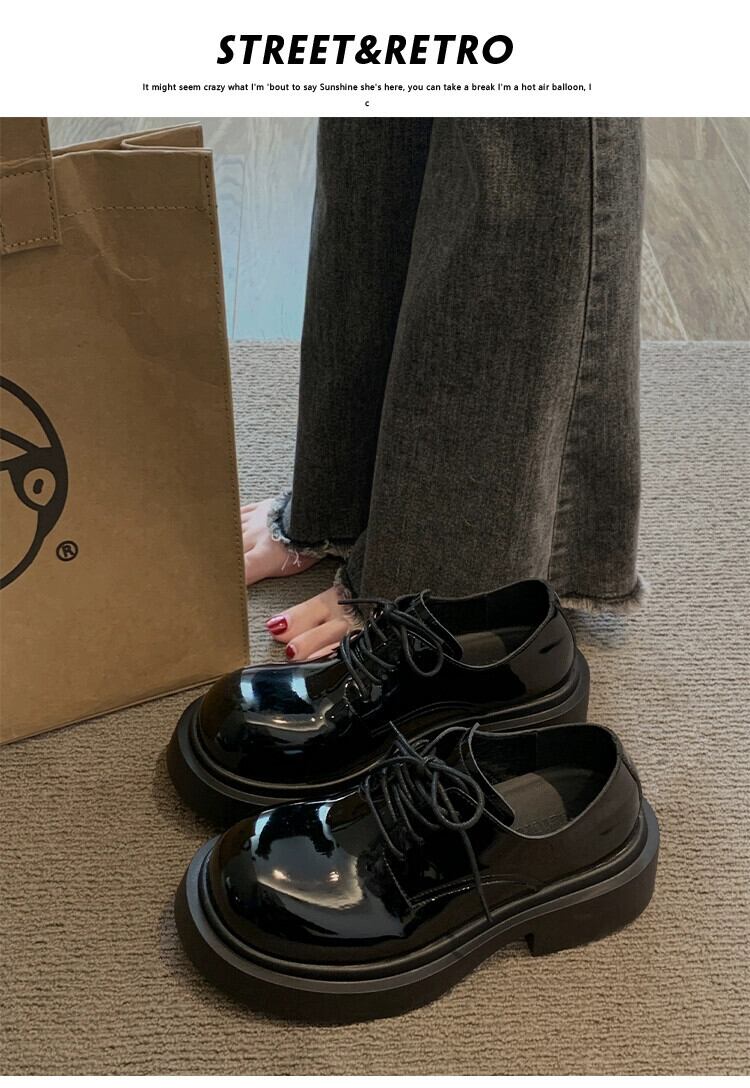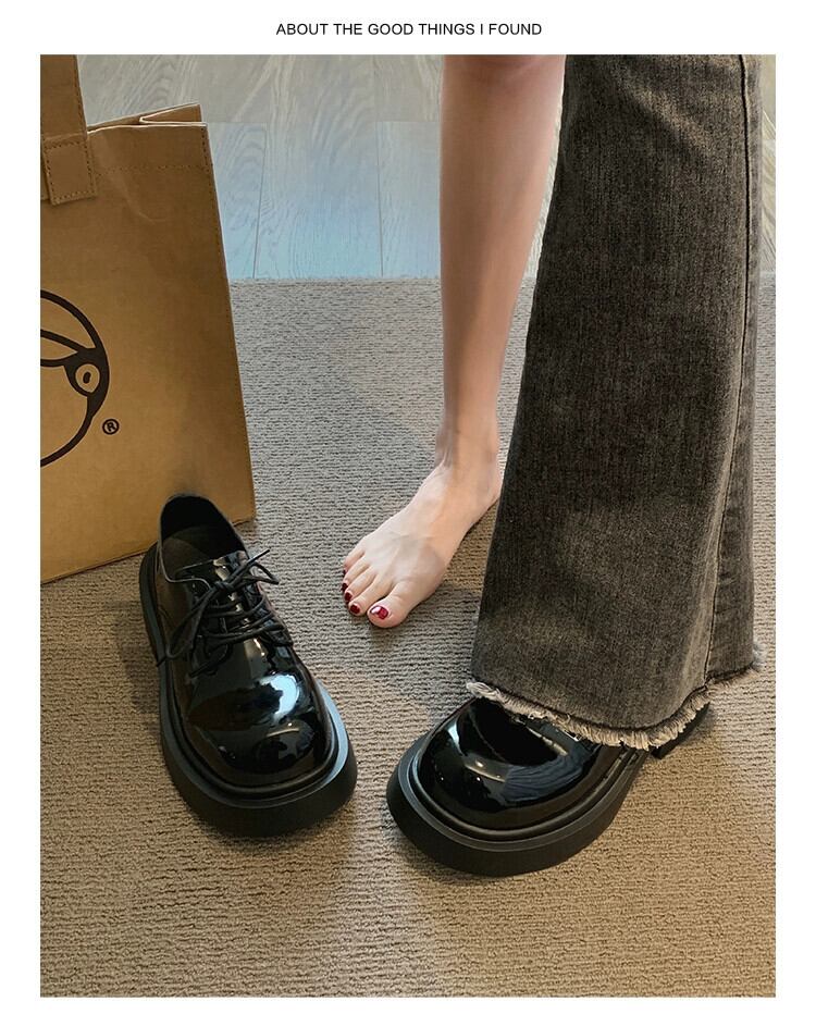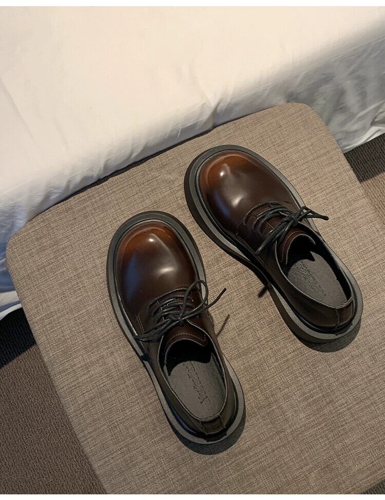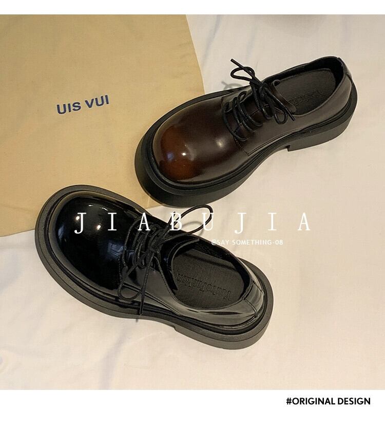 Jia Bujia 女性の小さな革靴 2024 春と秋の新ファッション多用途ノンスリップ厚底カジュアルストラップ英国靴 シューズ スプリング 春物 オータム 秋物 レザー jxjxf67122108032