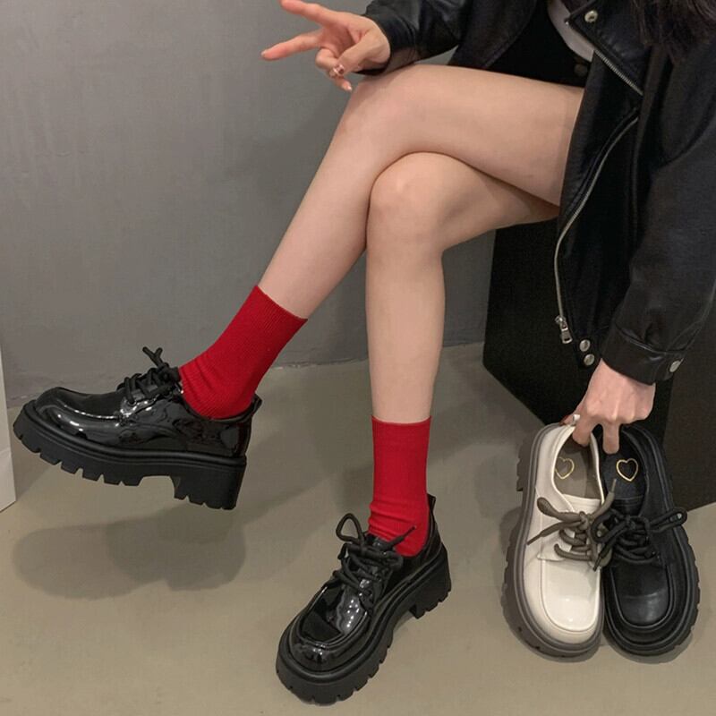 Jia Bufake 小さな革靴の女性 2024 春と秋の新スタイル多用途英国スタイルの厚底滑り止め ese 靴 シューズ スプリング 春物 オータム 秋物 レザー jxjxf75545924228