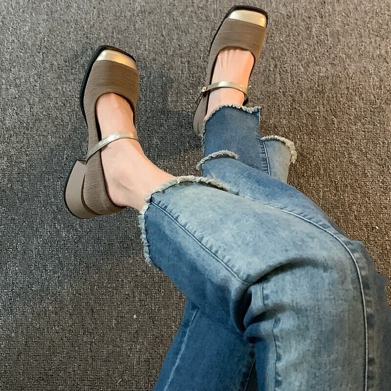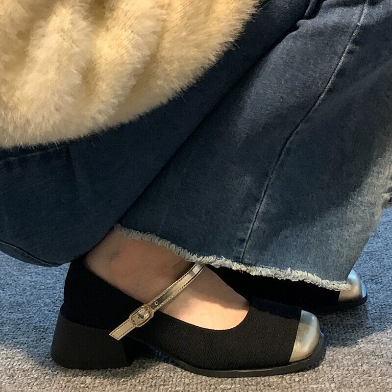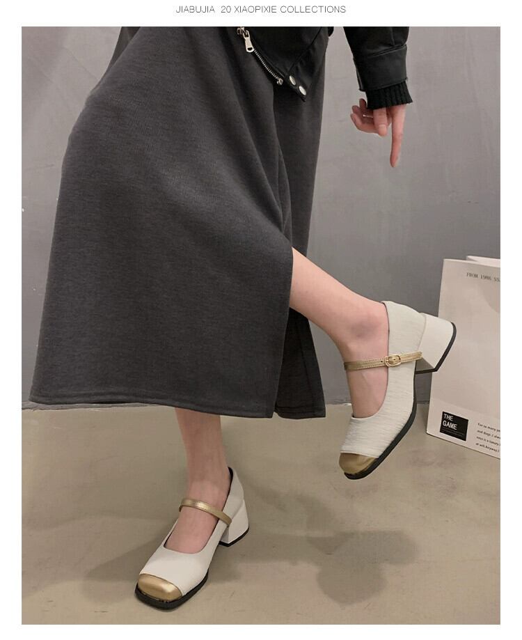 Jia Bujia スタイルのシングルシューズの女性 2024 春と秋の新しい気質多用途フランスの優しい厚いヒールのメリージェーンの靴 スプリング 春物 オータム 秋物 jxjxf84610088410