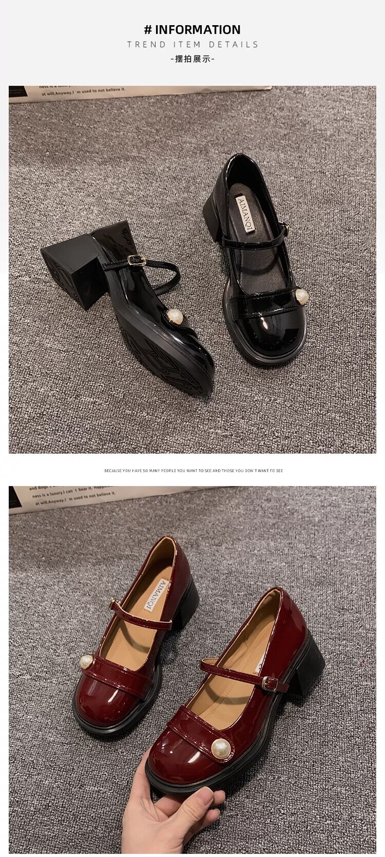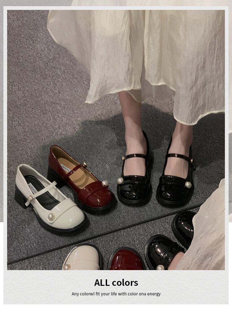 Jia Bujiaの超人気スタイルの女性の2024春の新しい気質パールフランスの優しいハイヒールの小さな革靴 シューズ スプリング 春物 レザー 真珠 jxjxf24130482090