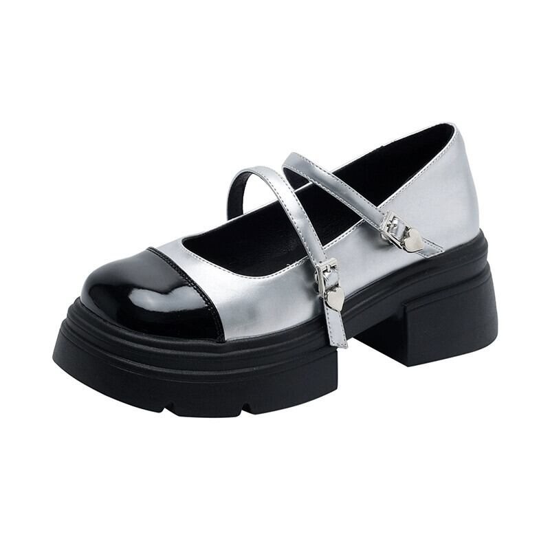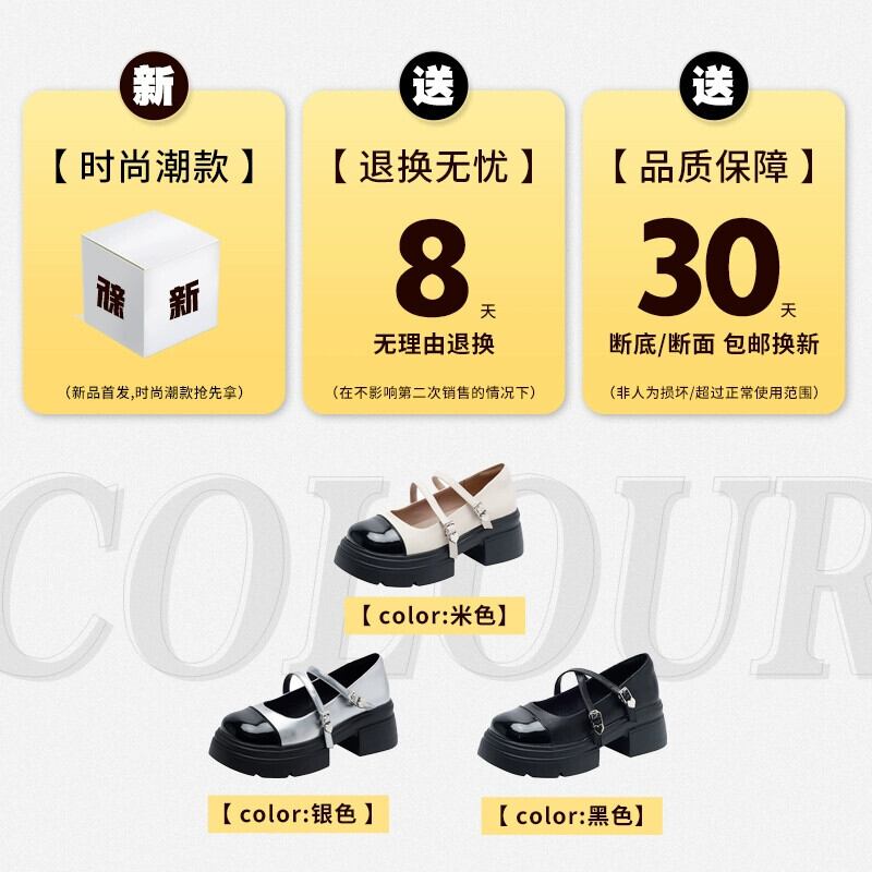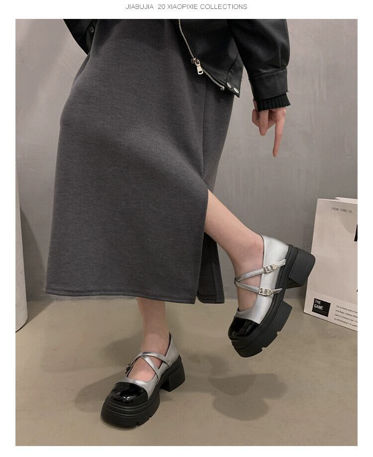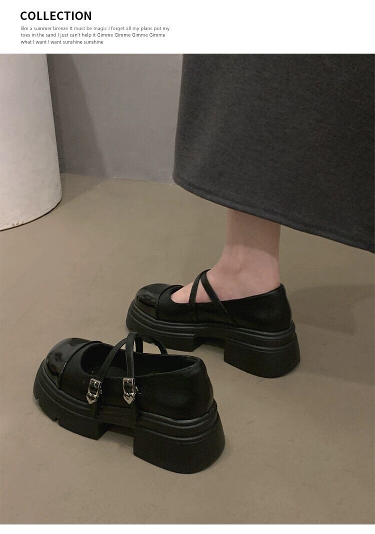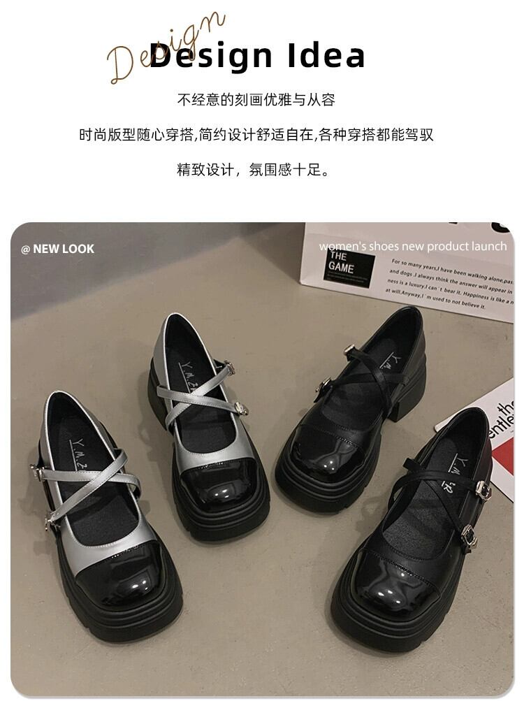 Jia Bujia フレンチスタイルの靴の女性 2024 春と秋の新フレンチスタイルの靴レトロ厚いヒール黒の厚底小さな革靴 シューズ ブラック スプリング 春物 オータム 秋物 レザー jxjxf57658287733
