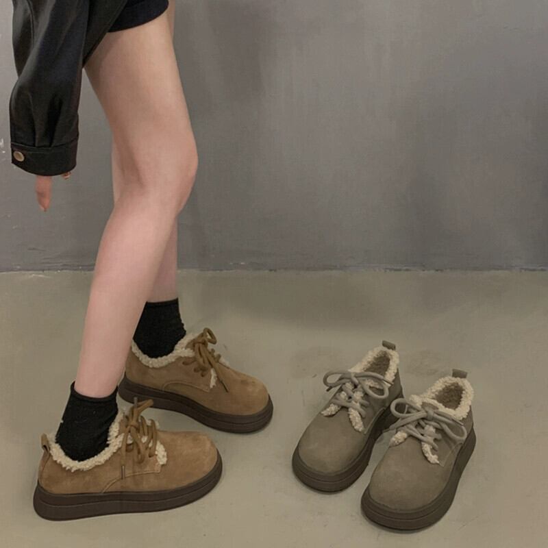Jiabu ホリデーシューズ女性の 2023 秋と冬プラスベルベットフレンチレトロ英国スタイルソフトソール小さな革靴 オータム 秋物 ウィンター 冬物 レザー jxjxf82064500928