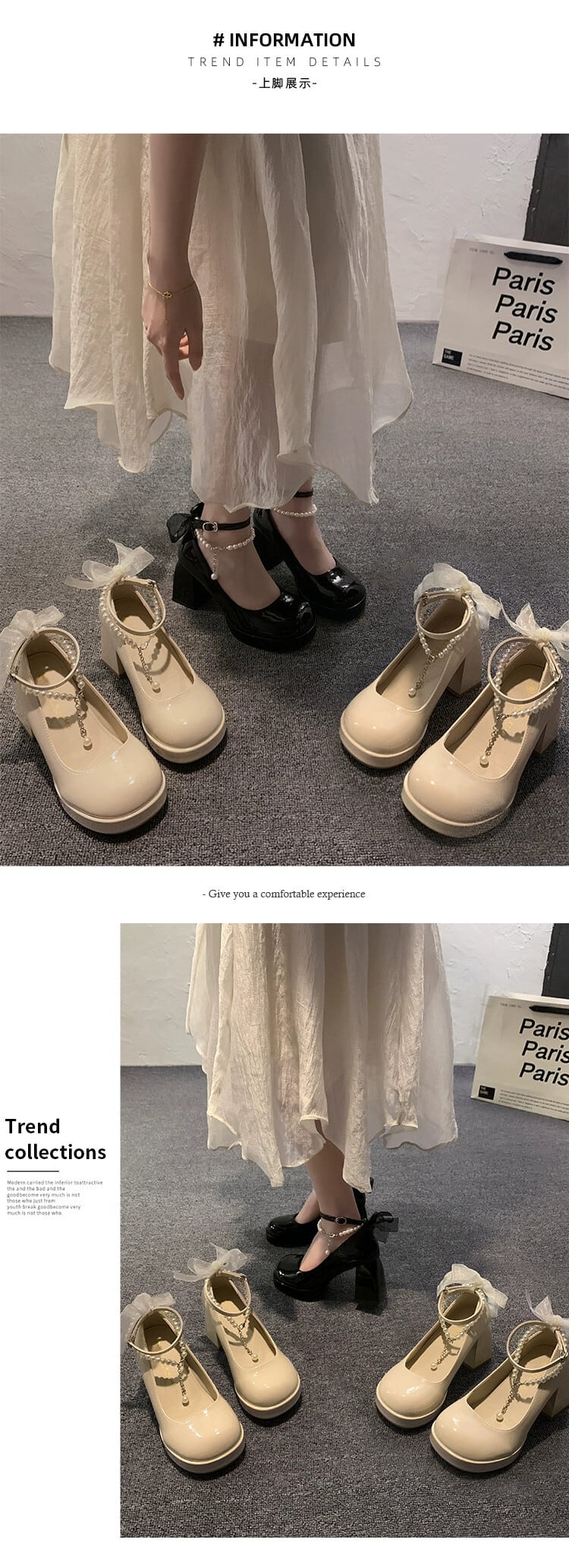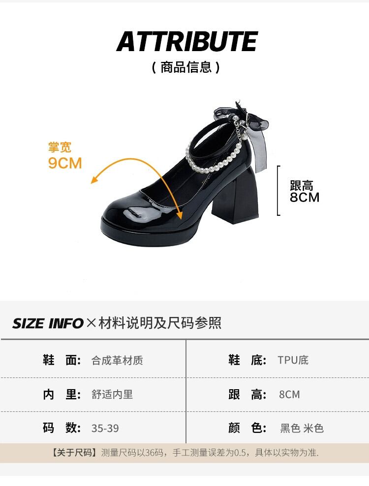 Jia Bujia インターネット有名人のハイヒールの靴の女性 2024 春と秋の新しい気質パールリボン小さなメリージェーンの靴 シューズ スプリング 春物 オータム 秋物 真珠 jxjxf37681061250