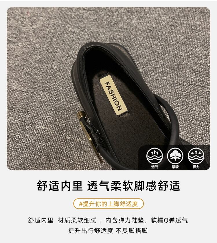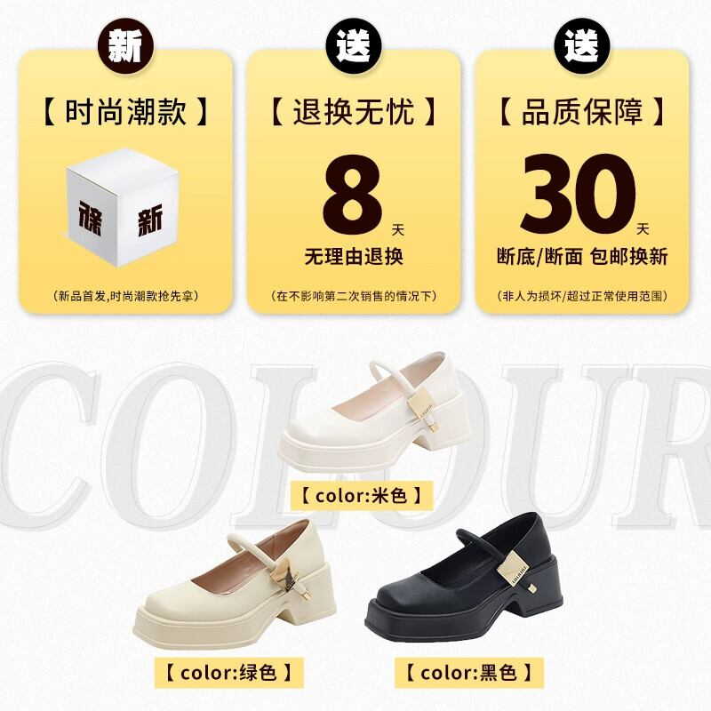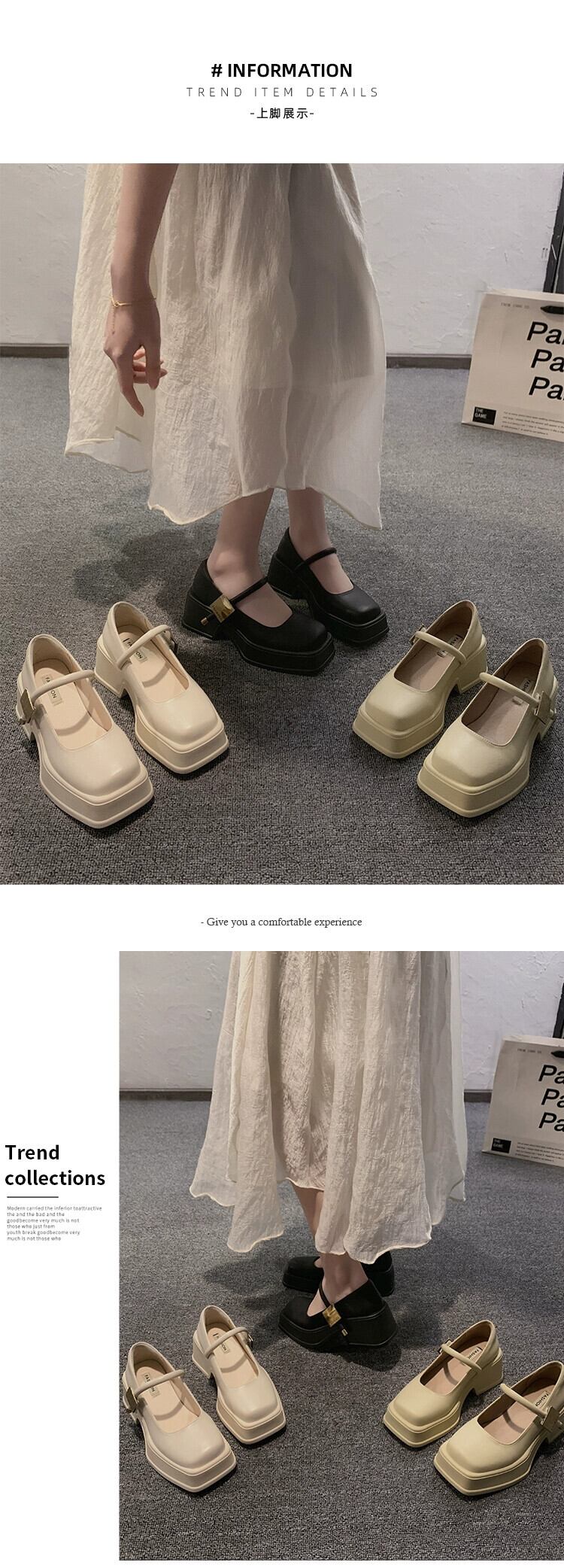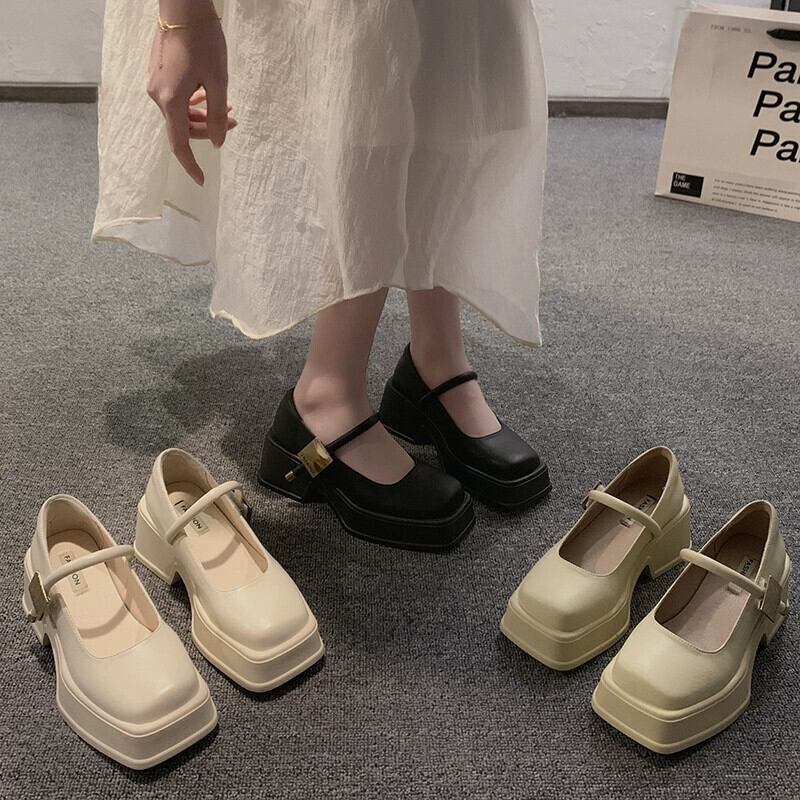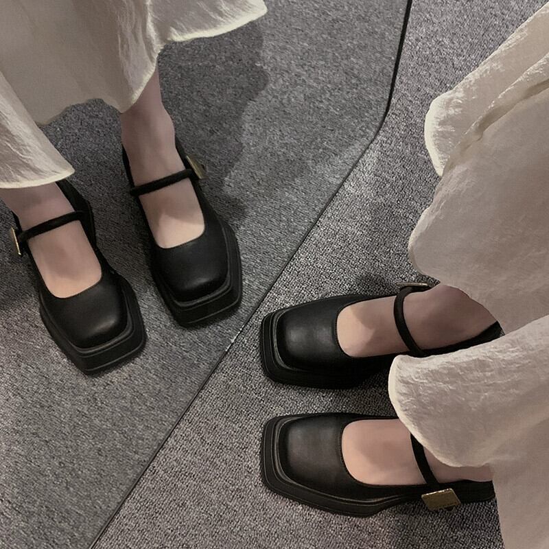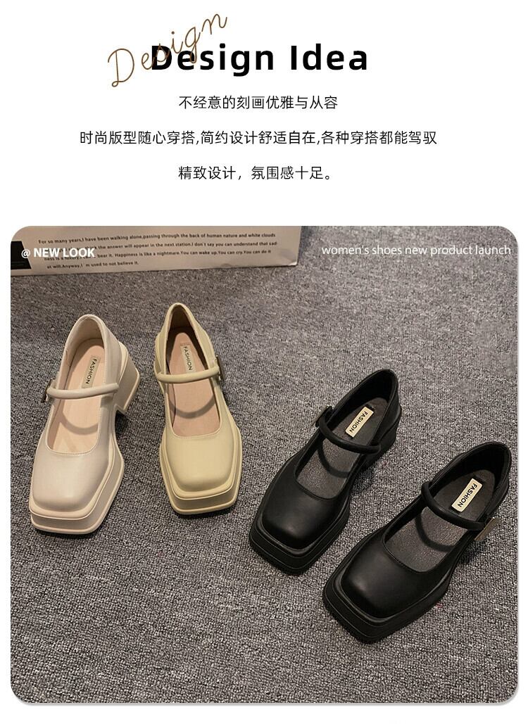 Jia Bufake シングルシューズの女性 2024 春と秋の新スタイルのフレンチ厚いヒールスクエアトゥメリージェーンの靴レトロな厚底の小さな革靴 スプリング 春物 オータム 秋物 レザー スクウェア jxjxf63213816225