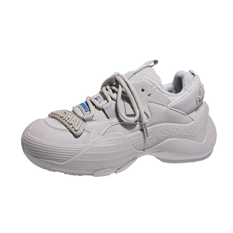 Jia Bujia レディース スポーツシューズ 2023 冬レトロ学生 Comtable ベルベット厚底ランニングお父さん靴 ウィンター 冬物 jxjxf93810251056