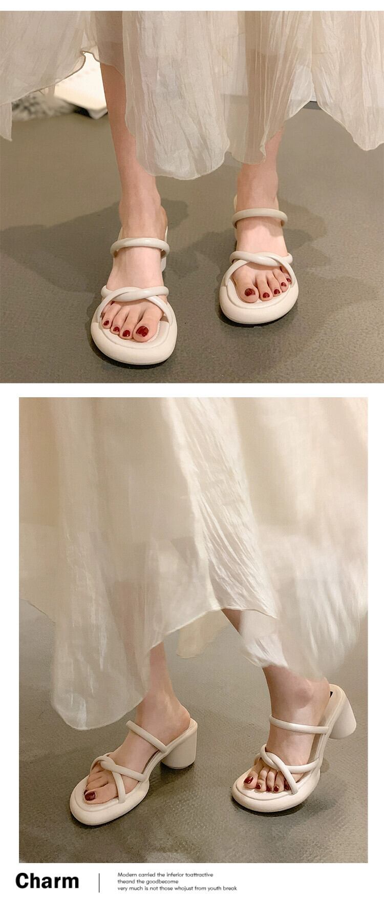 Jia Bujia はスリッパ女性 2024 春の新しいスタイルのインターネット有名人スーパー、優しく多目的な、小さな厚いヒールのスリッパを履いています。 ミュール 靴 シューズ スプリング 春物 jxjxf51184096497