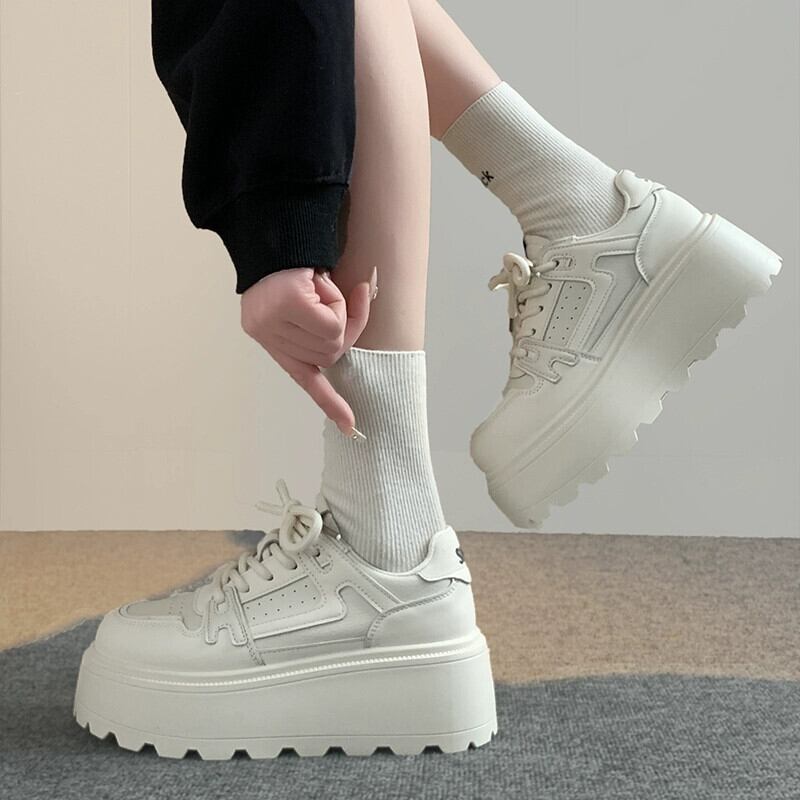 Jia Bujia カジュアルシューズの女性 2024 春と秋の新スタイルのインターネット有名人多用途学生レトロ厚底滑り止め白靴 ホワイト スプリング 春物 オータム 秋物 jxjxf85832131752