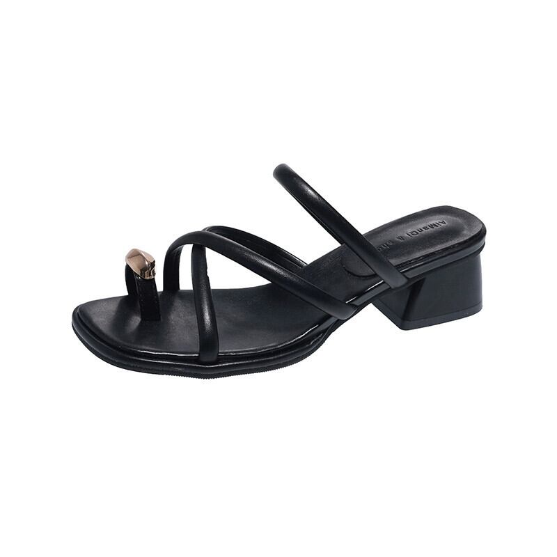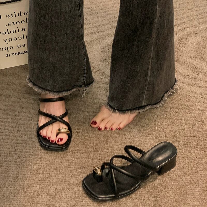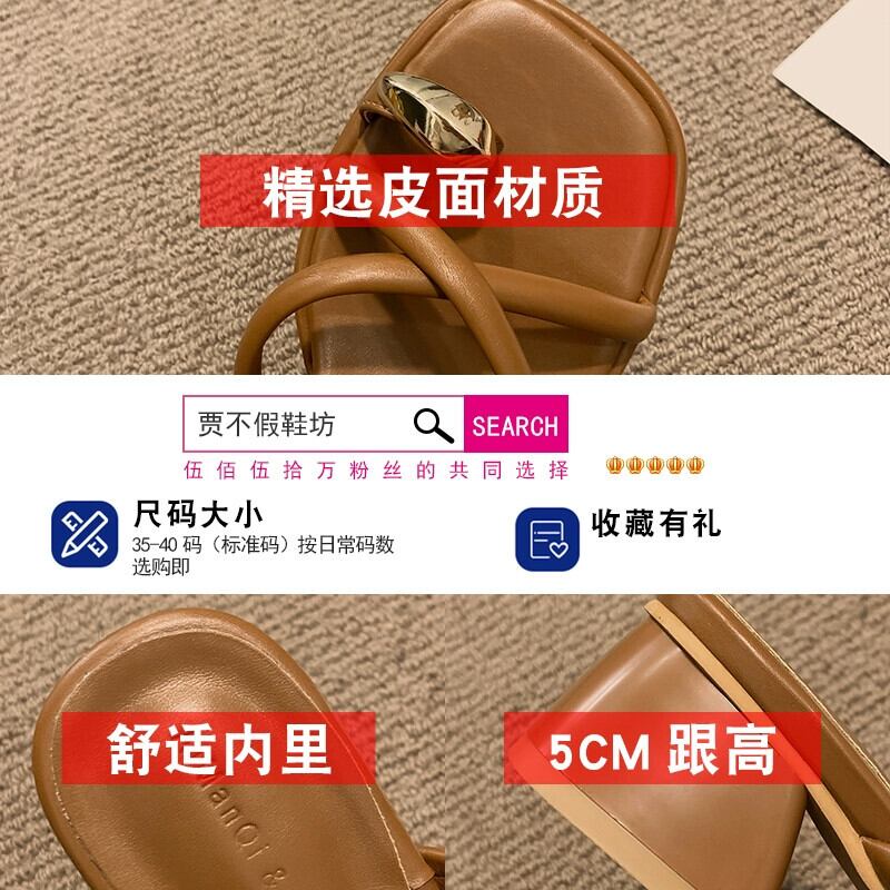 Jia Bu 偽スリッポンスリッパ女性の外で着用 2024 春の新フレンチレトロオールマッチ小さな厚いヒールサンダル ミュール 靴 シューズ スプリング 春物 jxjxf12981686034