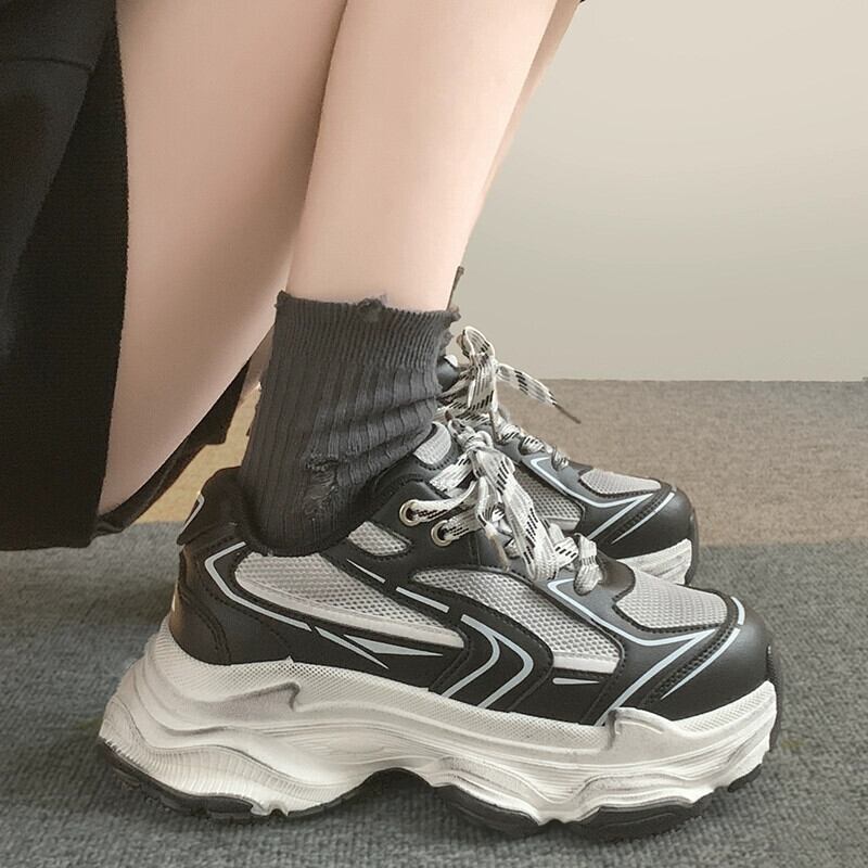 Jia Bujia インターネット有名人のパパシューズの女性 2024 春と秋の新しいスタイルのスーパー、ハンサム、ファッショナブルな厚底スニーカー 靴 スプリング 春物 オータム 秋物 jxjxf32976056134