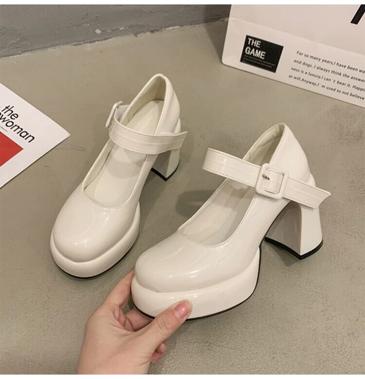 Jia Bufake メリージェーンの靴の女性 2024 春と秋の新しい気質小さなファッションシンプルなレトロなハイヒール シューズ スプリング 春物 オータム 秋物 jxjxf28159603353