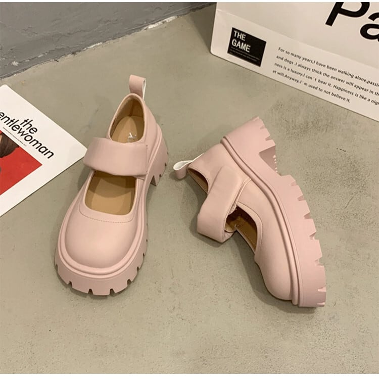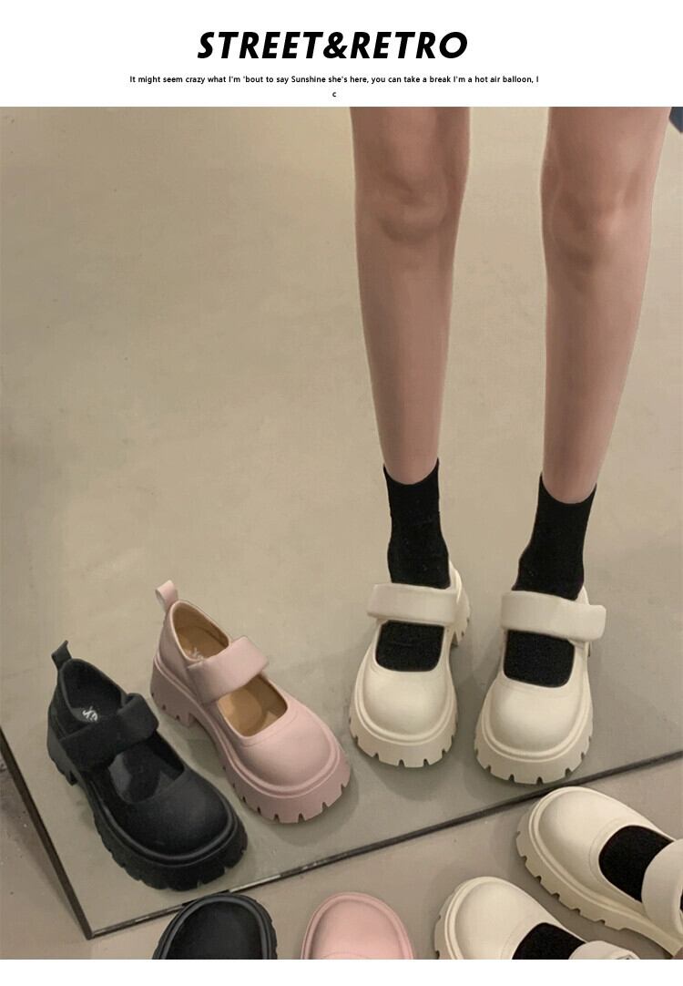 Jia Bufake メリージェーンの靴の女性の 2024 春スタイルシンプルな気質レトロ厚い底高めの小さな革の靴 シューズ スプリング 春物 レザー jxjxf97243363083