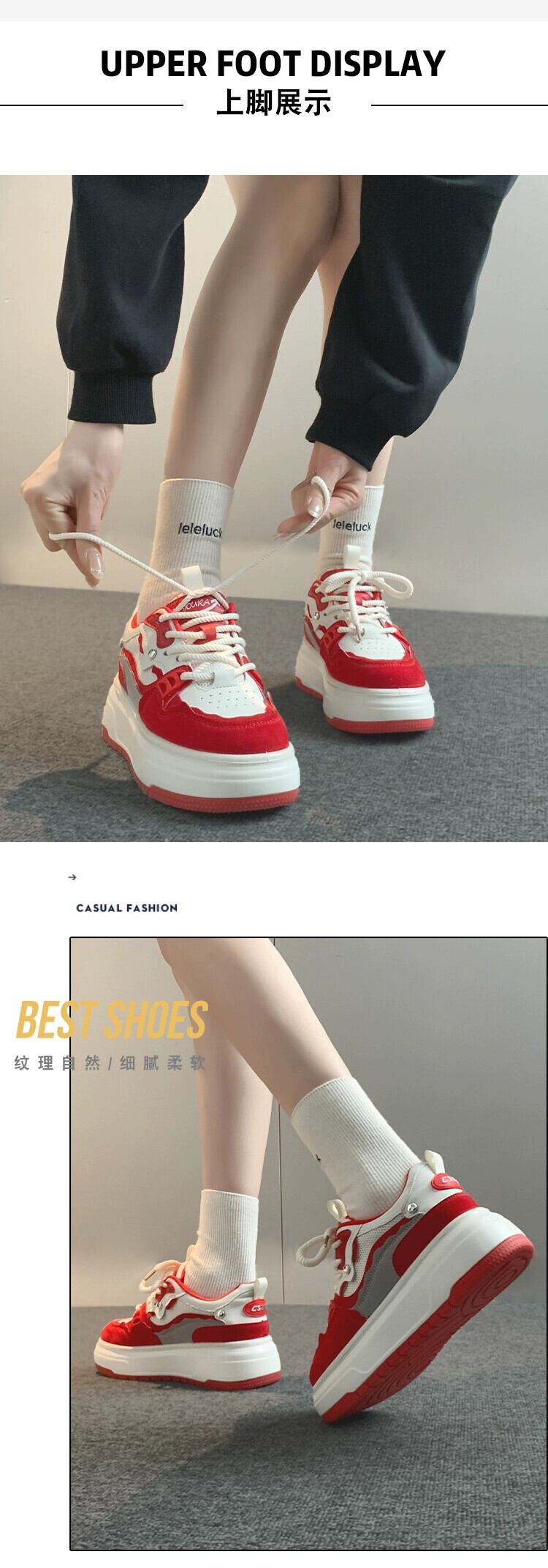Jia Bujia レディース カジュアルシューズ 2024 春新入生多用途レトロ platm 厚底滑り止めスポーツスニーカー 靴 スプリング 春物 jxjxf99966833874
