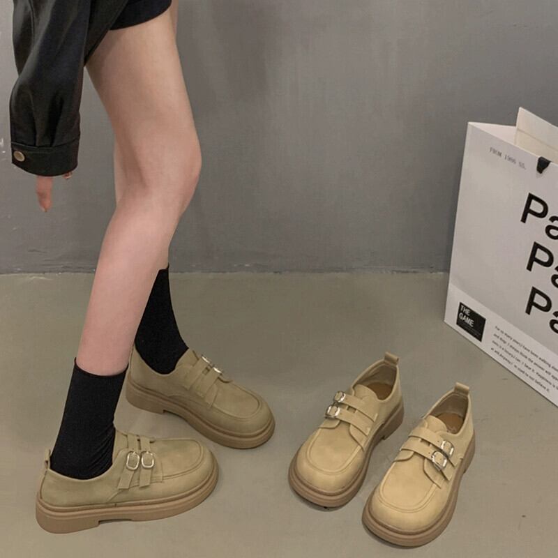 Jia Bujia 婦人靴 2024 春と秋のレトロなベルトバックル多用途通勤フラットローファー シューズ スプリング 春物 オータム 秋物 ハーネス jxjxf80119767818