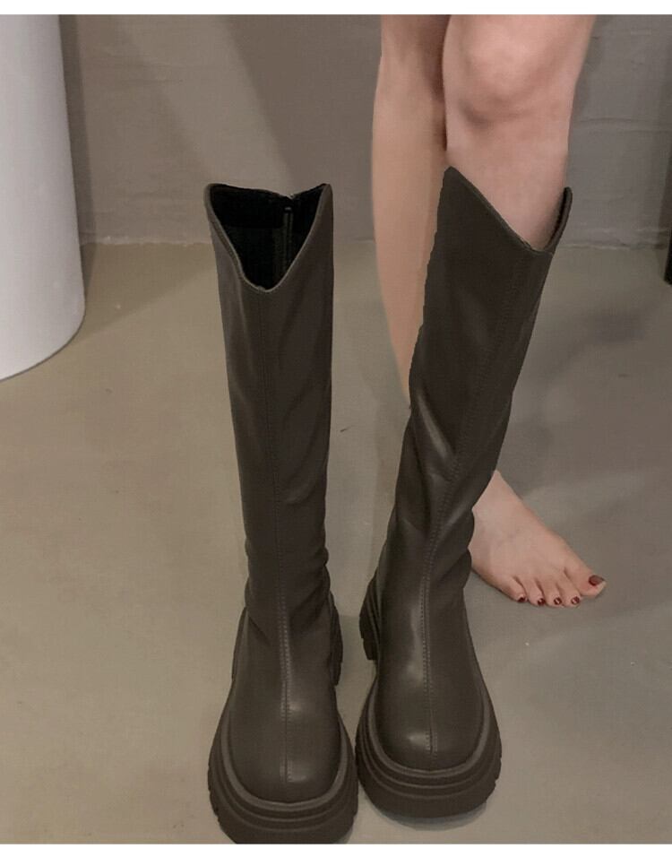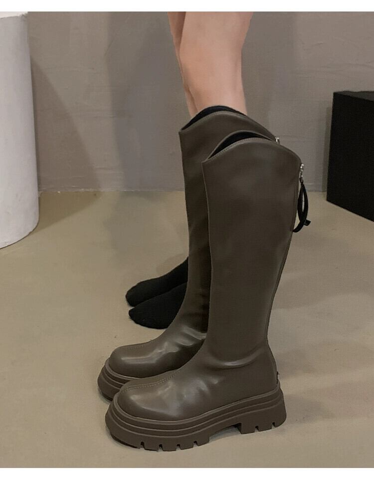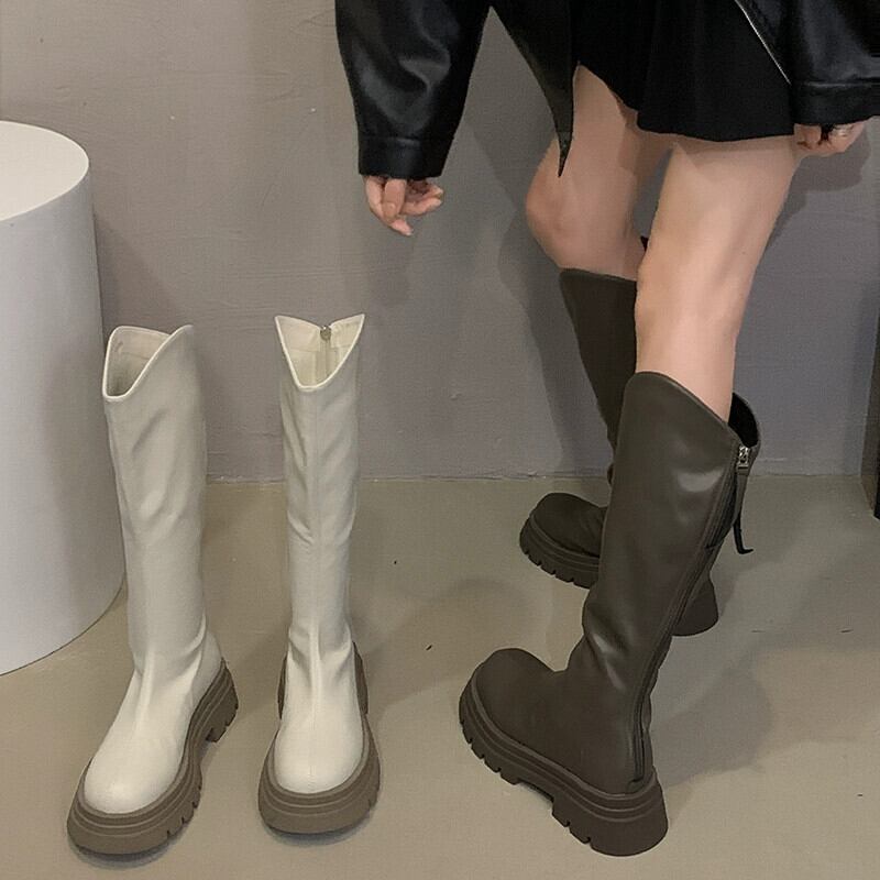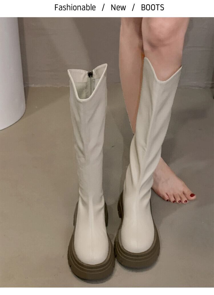 Jia Bujia 厚底ブーツの女性、2024 秋の新しいスタイル、スタイリッシュ、多用途、カジュアル、ベルベットとスリムブーツ 靴 シューズ オータム 秋物 jxjxf76562384379