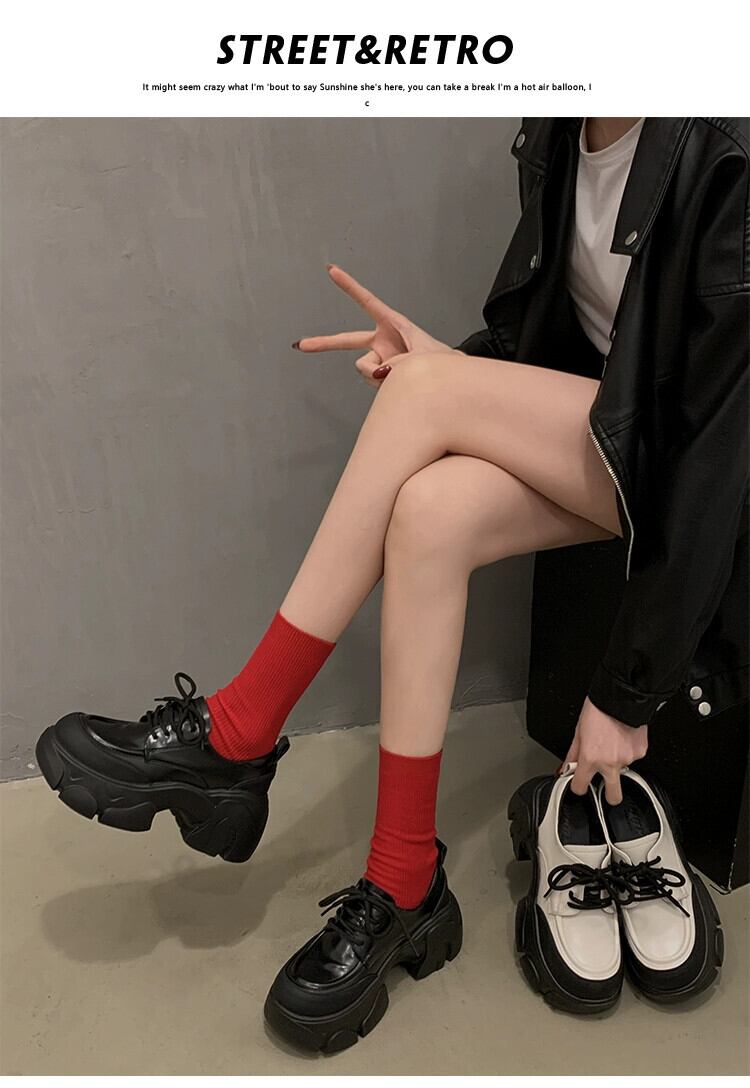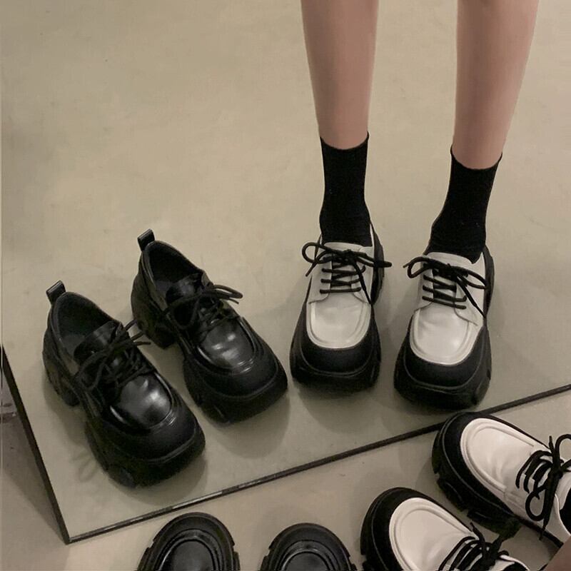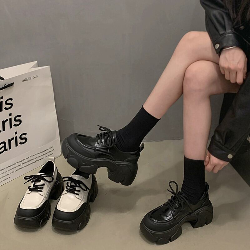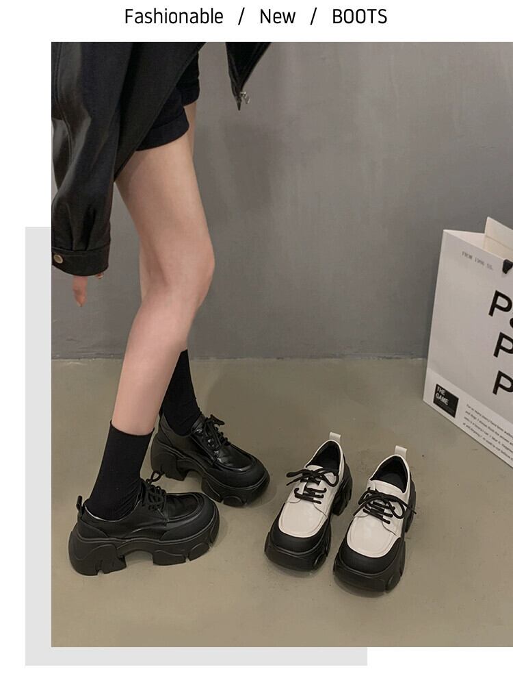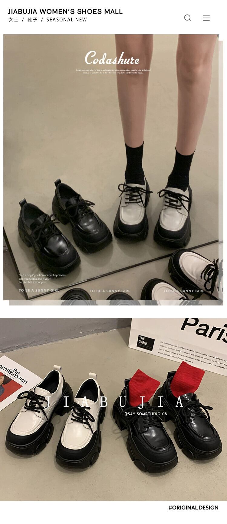 Jia Bufake 厚底レザーシューズの女性 2024 春の新スタイル多用途英国スタイルのファッション滑り止め高めカジュアルシューズ 靴 スプリング 春物 jxjxf10730269401
