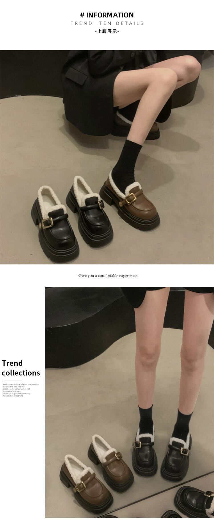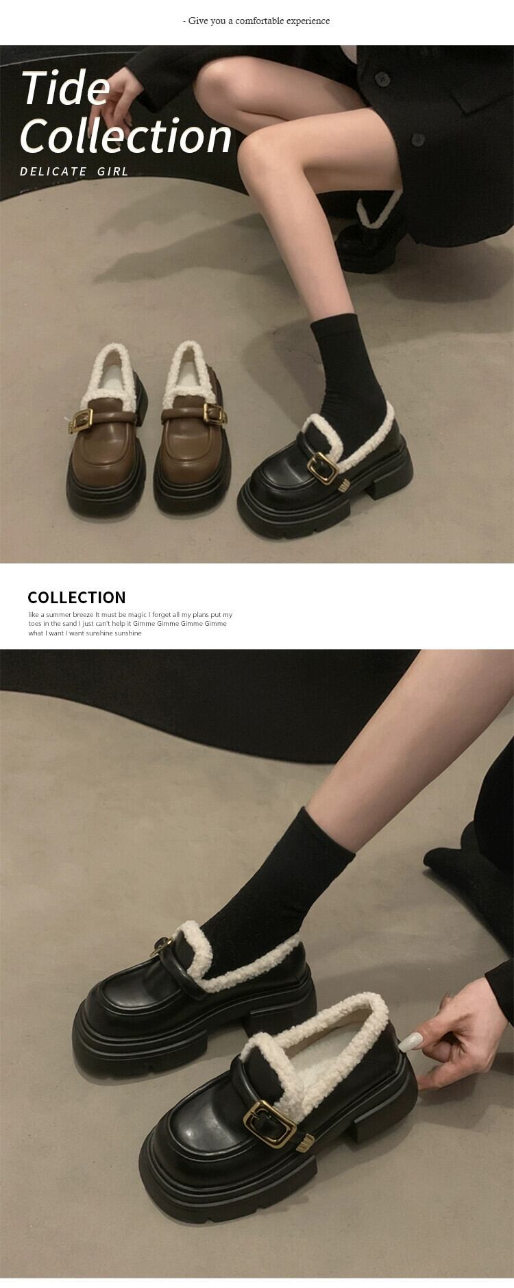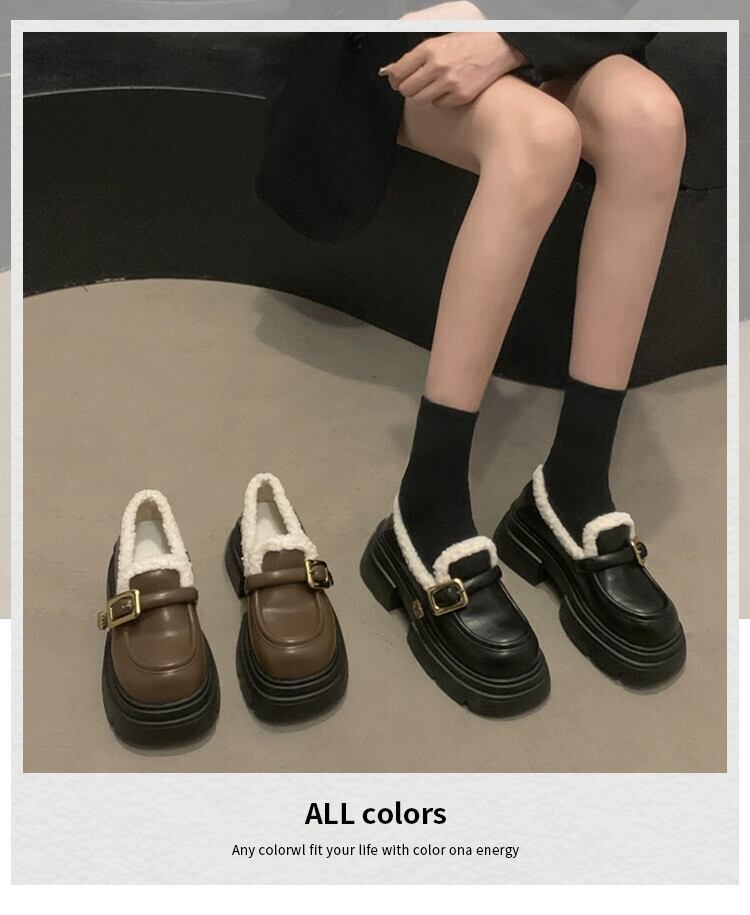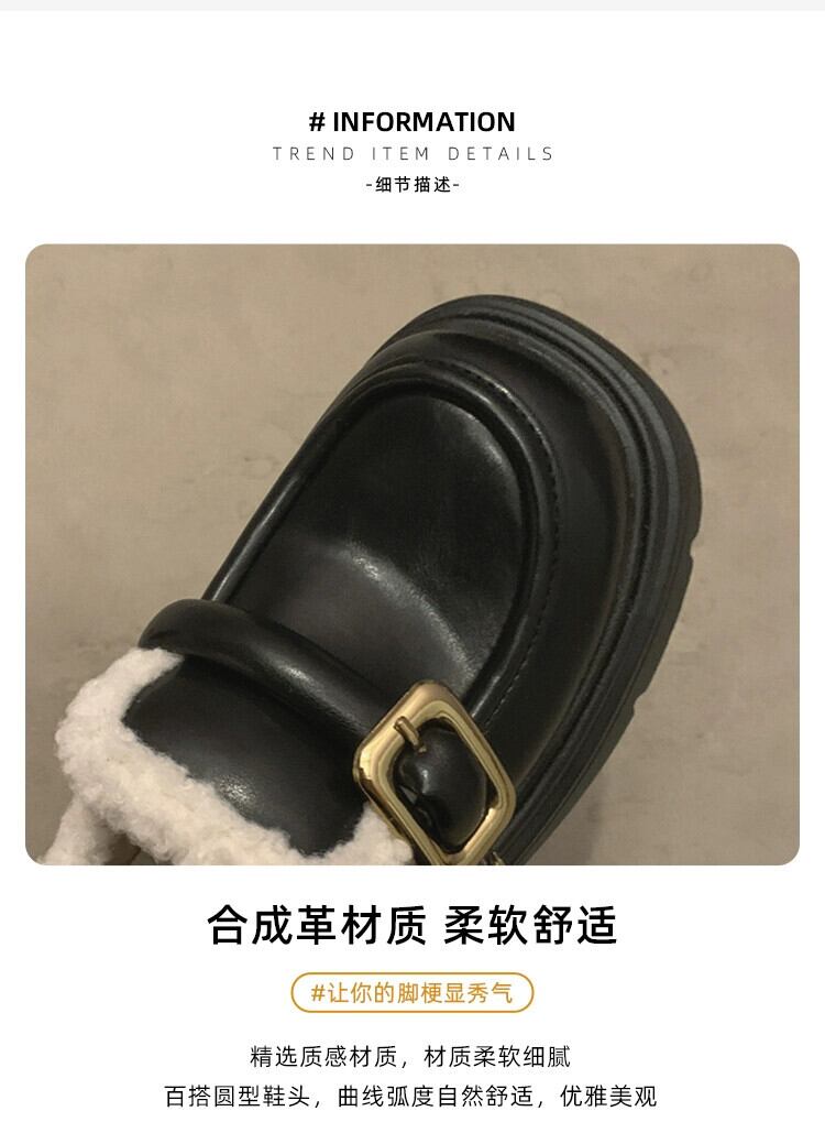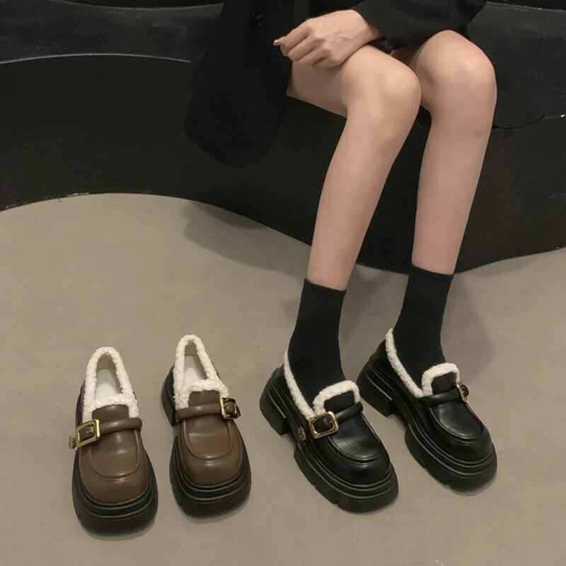 Jia Bujia ローファー女性の 2023 冬のレトロスタイルベルトバックル通勤太いヒール小さな革の靴トレンディ シューズ ウィンター 冬物 レザー ハーネス jxjxf31591375303