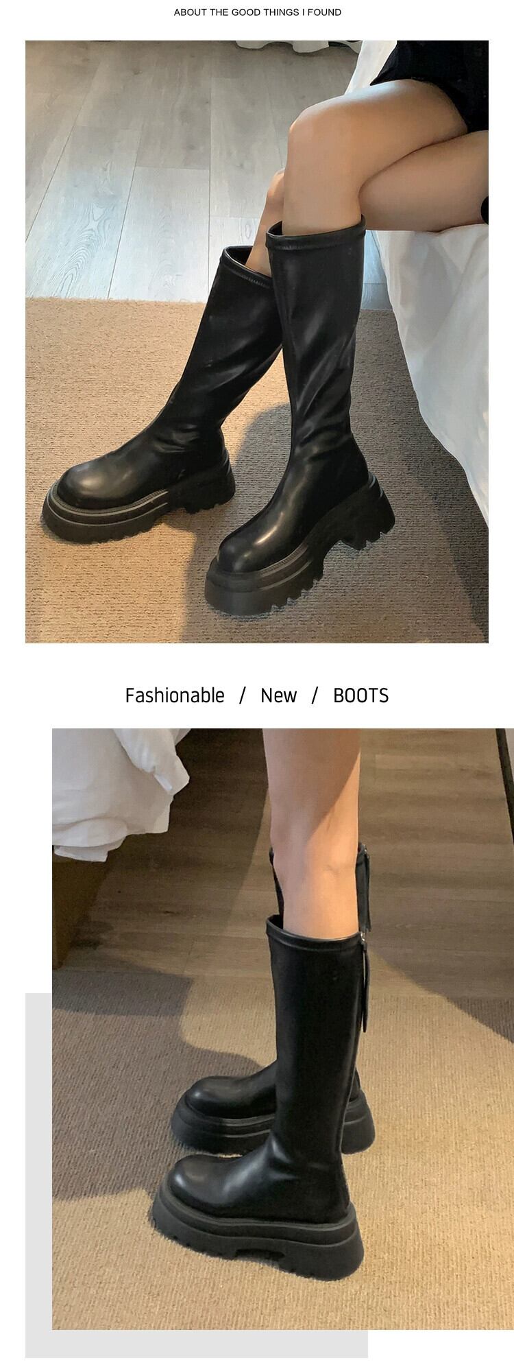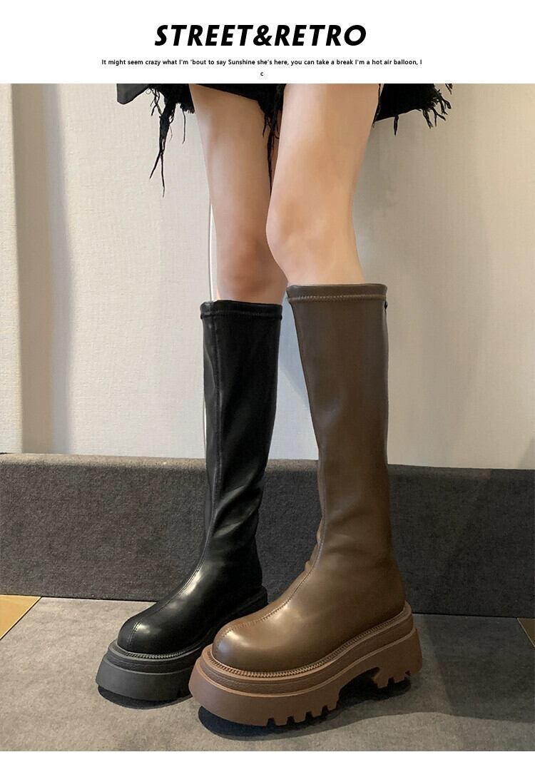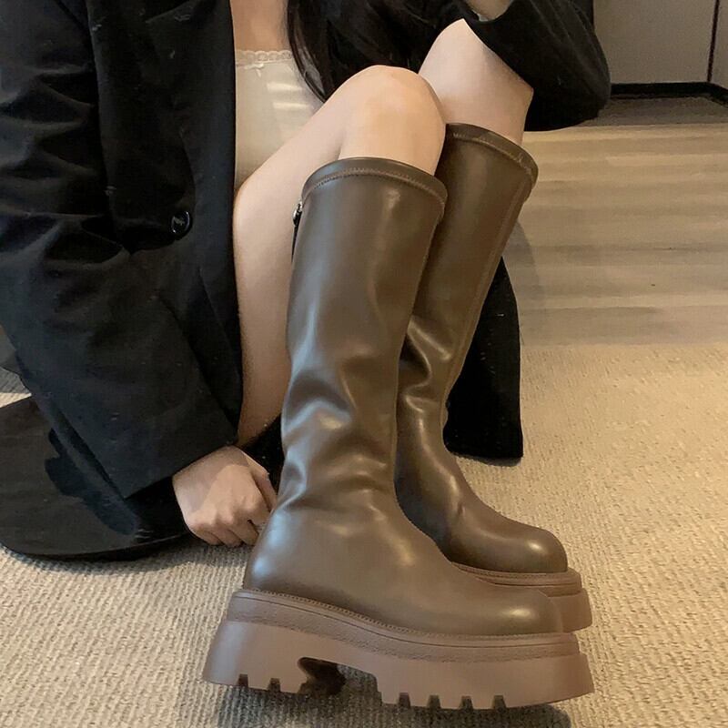 Jia Bufake ブーツの女性 2024 春の新ファッション多用途レトロスリム厚底フレンチスリムブーツトレンド 靴 シューズ スプリング 春物 jxjxf42299628639