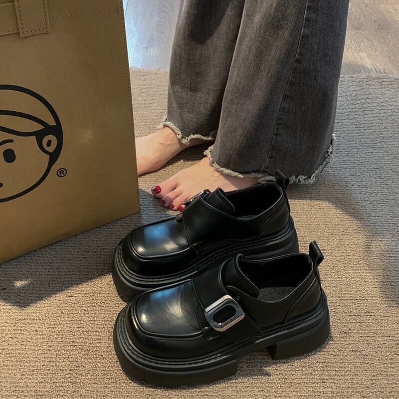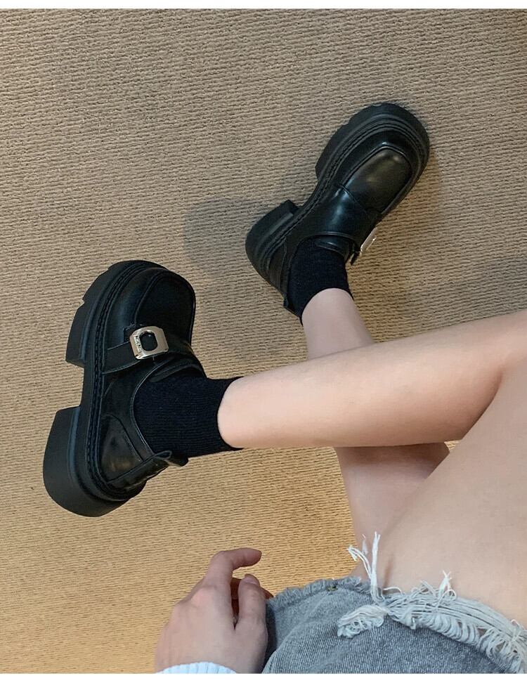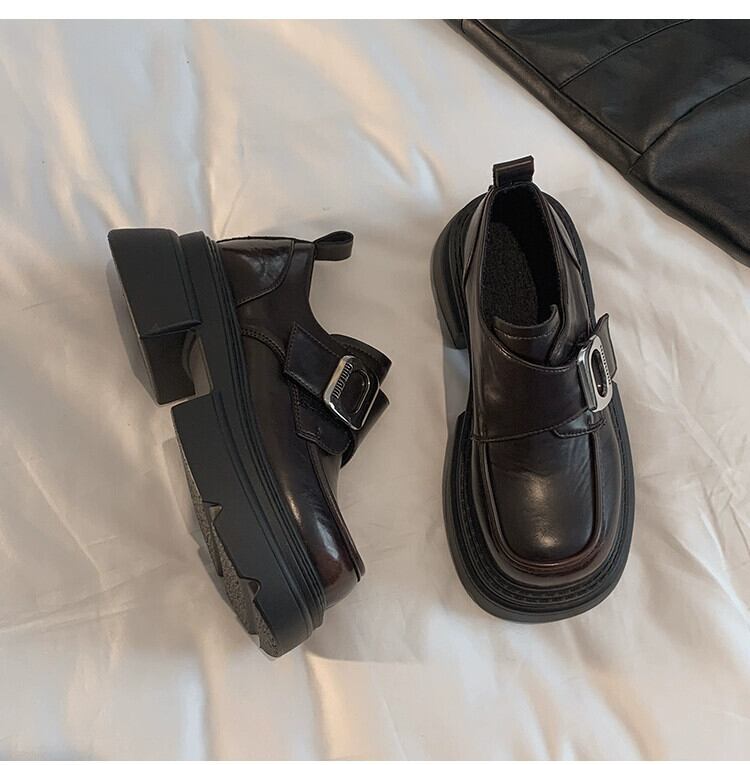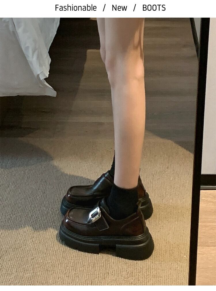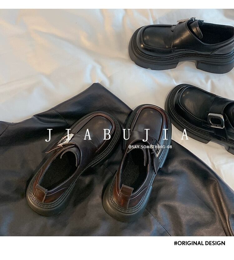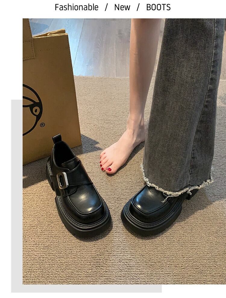 Jia Bujia スタイルのシングルシューズの女性 2023 冬の新スタイルファッショナブルなベルクロプラスベルベット厚いヒールローファー 靴 ウィンター 冬物 jxjxf30206586122