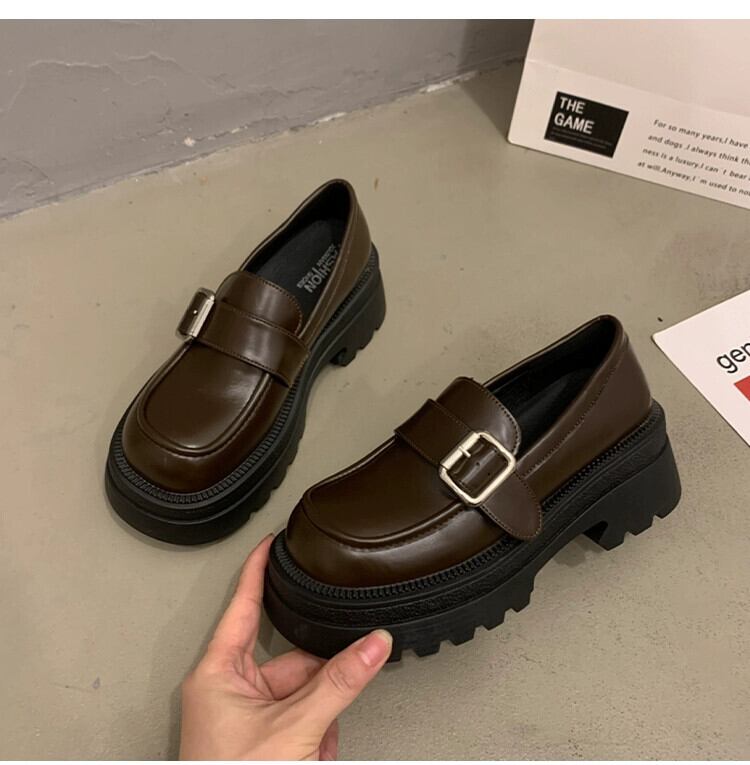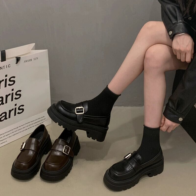 Jia Bujia ローファー女性の 2023 冬ベルトバックル気質多用途高揚太いヒールの靴 シューズ ウィンター 冬物 ハーネス jxjxf23379133476