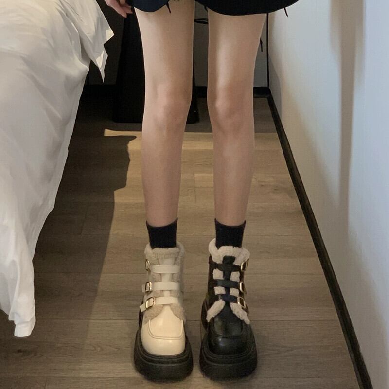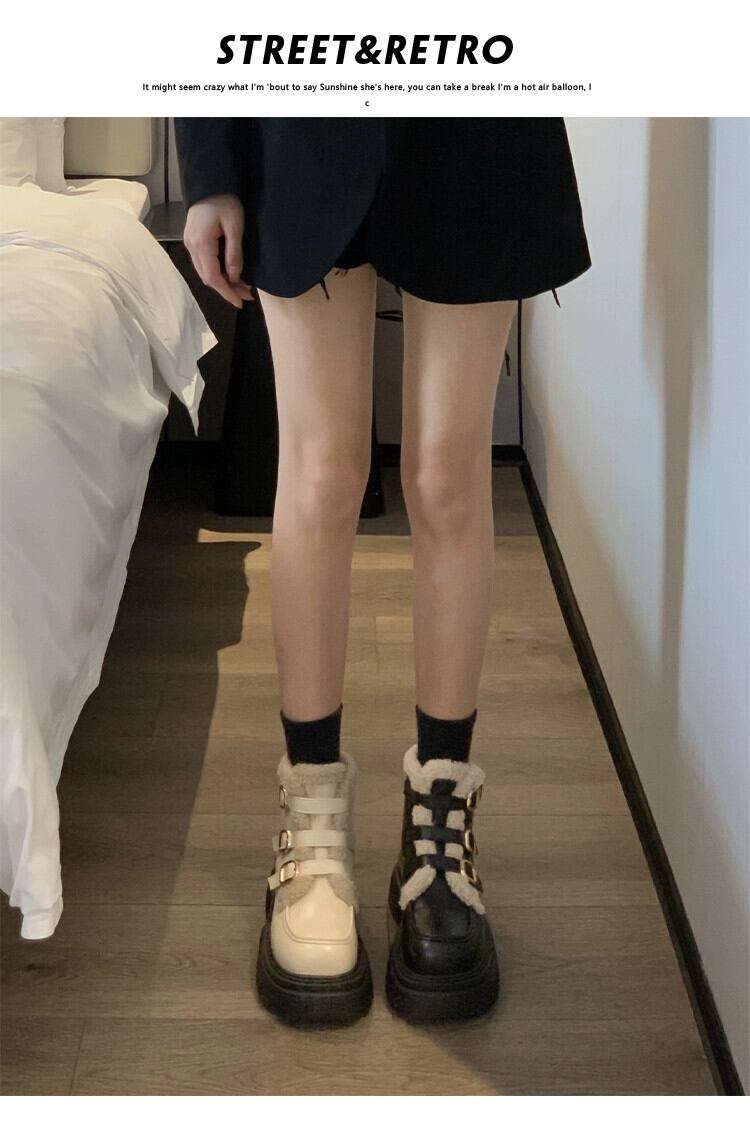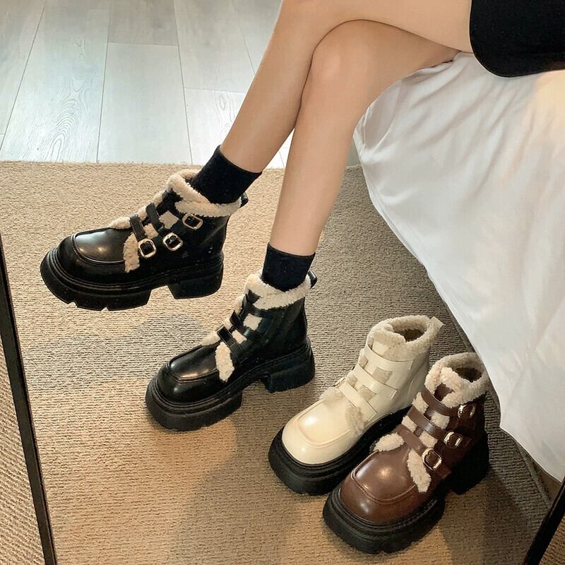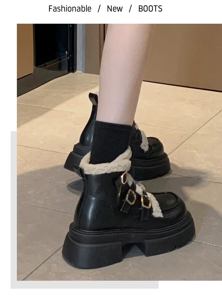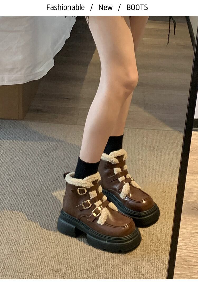 Jia Bufake ショートブーツ女性の 2024 春レトロスタイル多用途プラスベルベット暖かい厚底フランス綿ブーツ コットン 靴 シューズ スプリング 春物 jxjxf44703331400