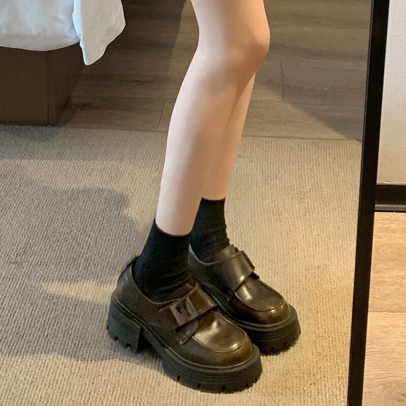 Jia Bufake 英国小さな革の靴の女性 2024 春の新スタイル多用途レトロ英国スタイル厚い底強化シングルシューズ黒 ブラック スプリング 春物 レザー jxjxf30084758469
