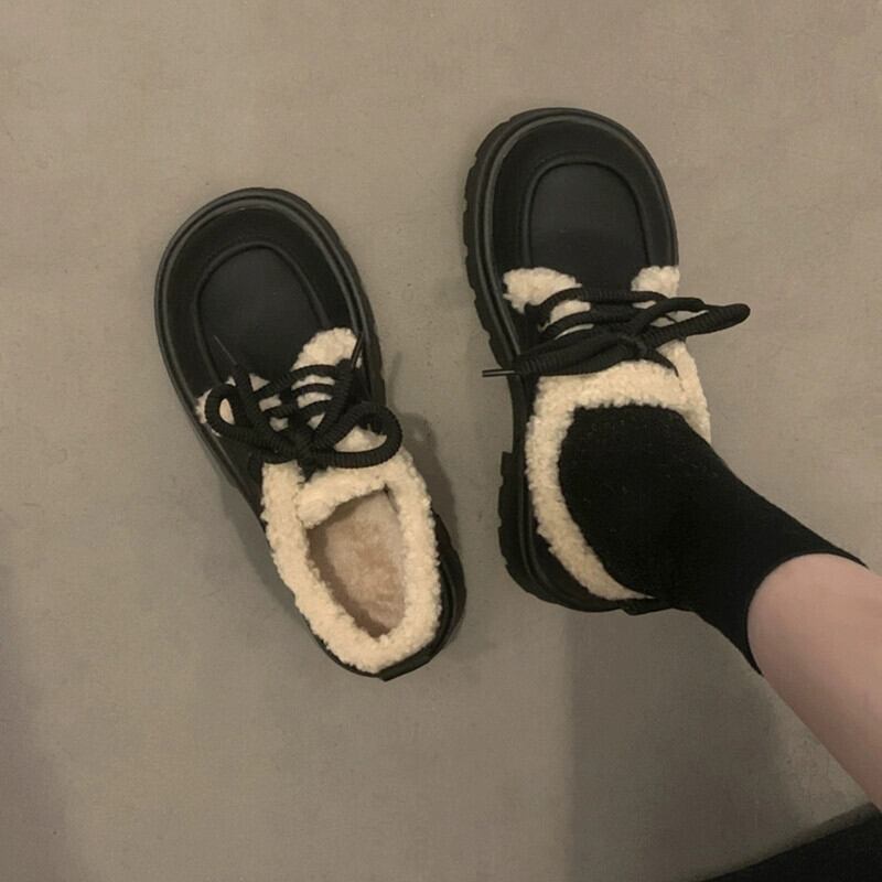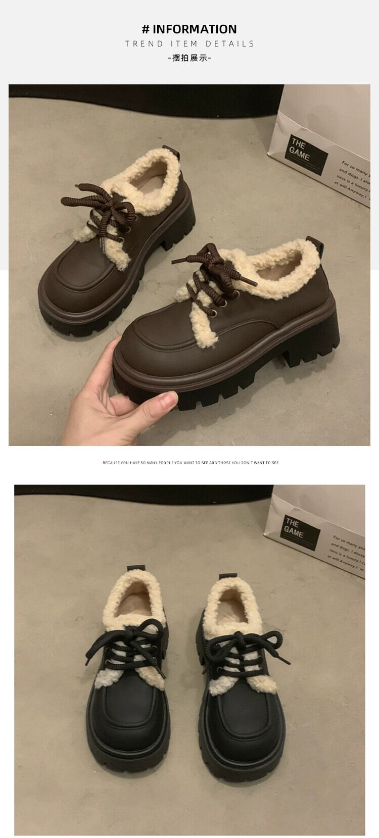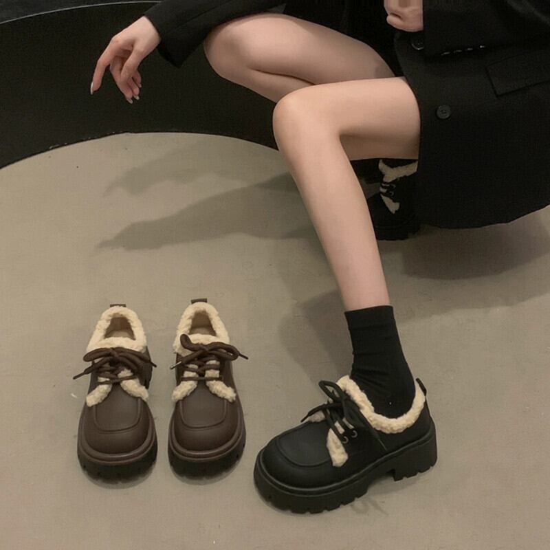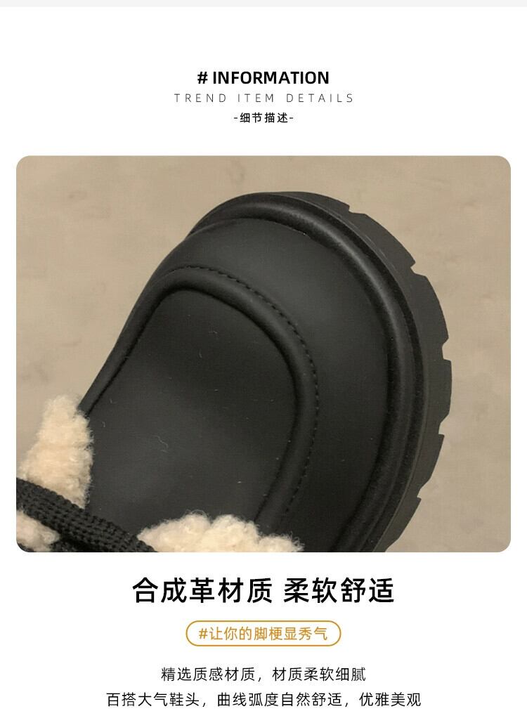 Jia Bufake シングルシューズの女性 2023 新しい冬スタイル ese 多用途学生プラスベルベット厚底ファッショナブルな小さな革靴トレンド ウィンター 冬物 レザー jxjxf13897993045