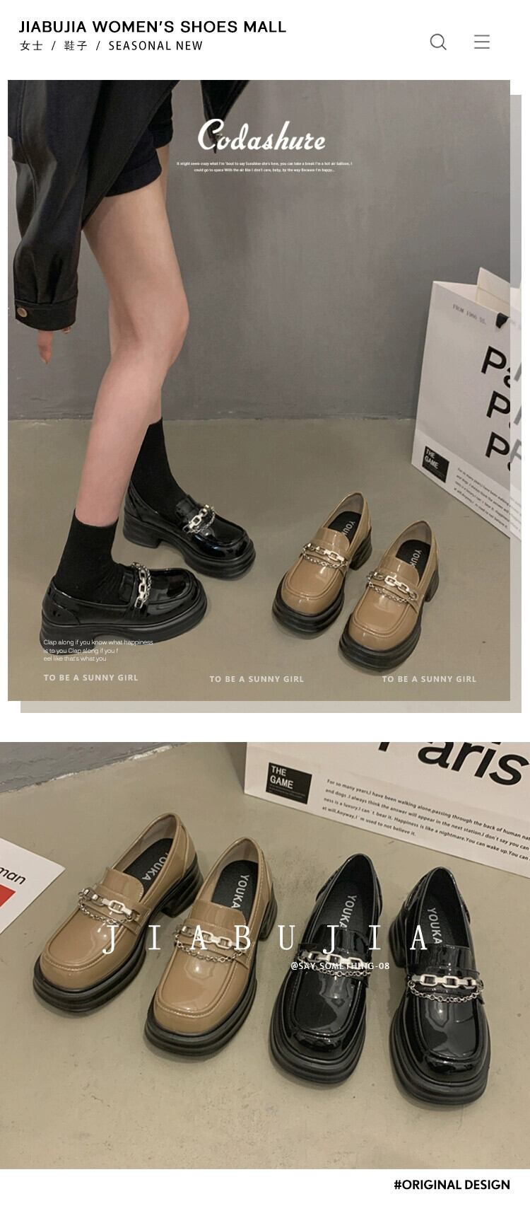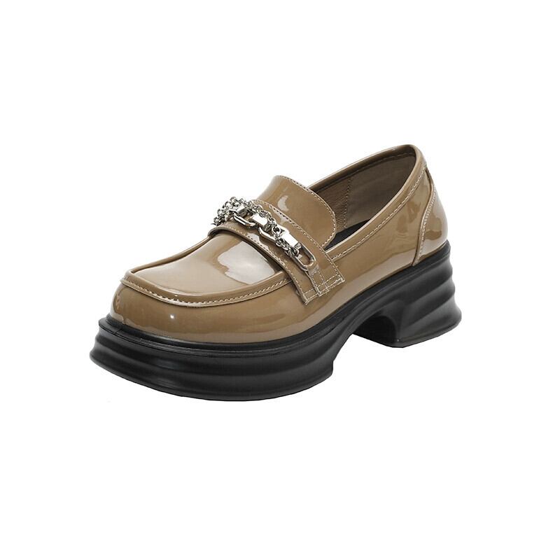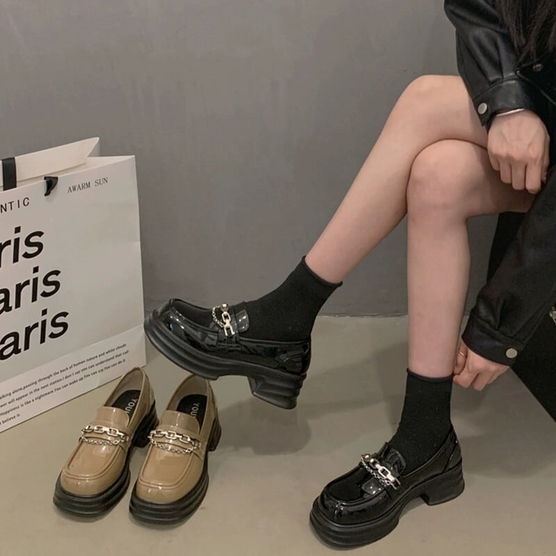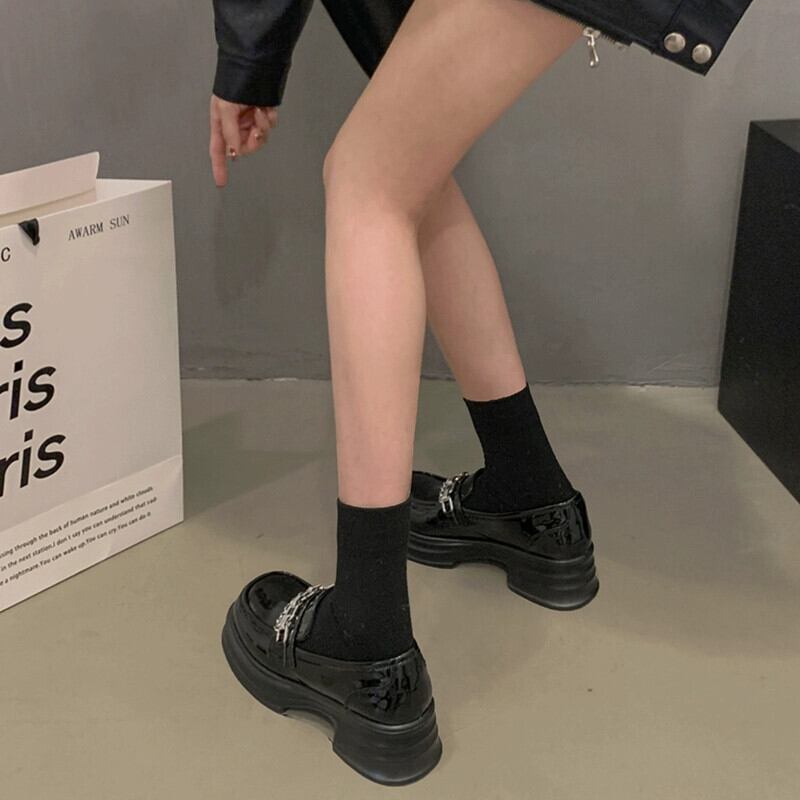 Jia Bufake 厚いヒールローファーの女性 2023 冬の新しい気質メタルチェーンスタイルの靴 シューズ ウィンター 冬物 jxjxf74588489747