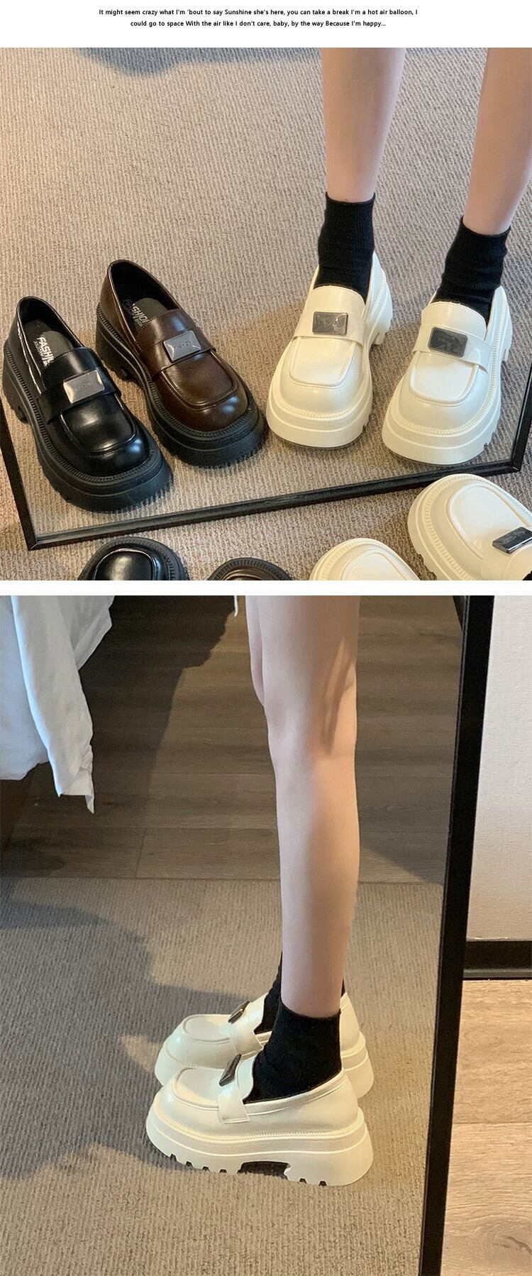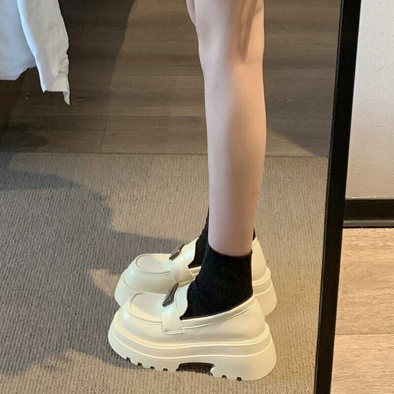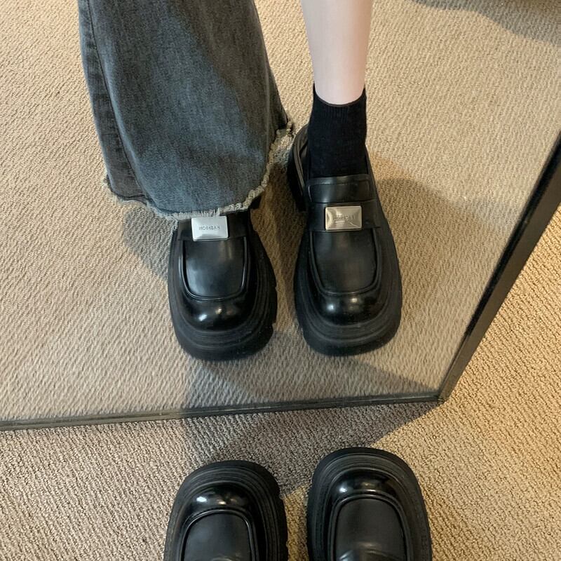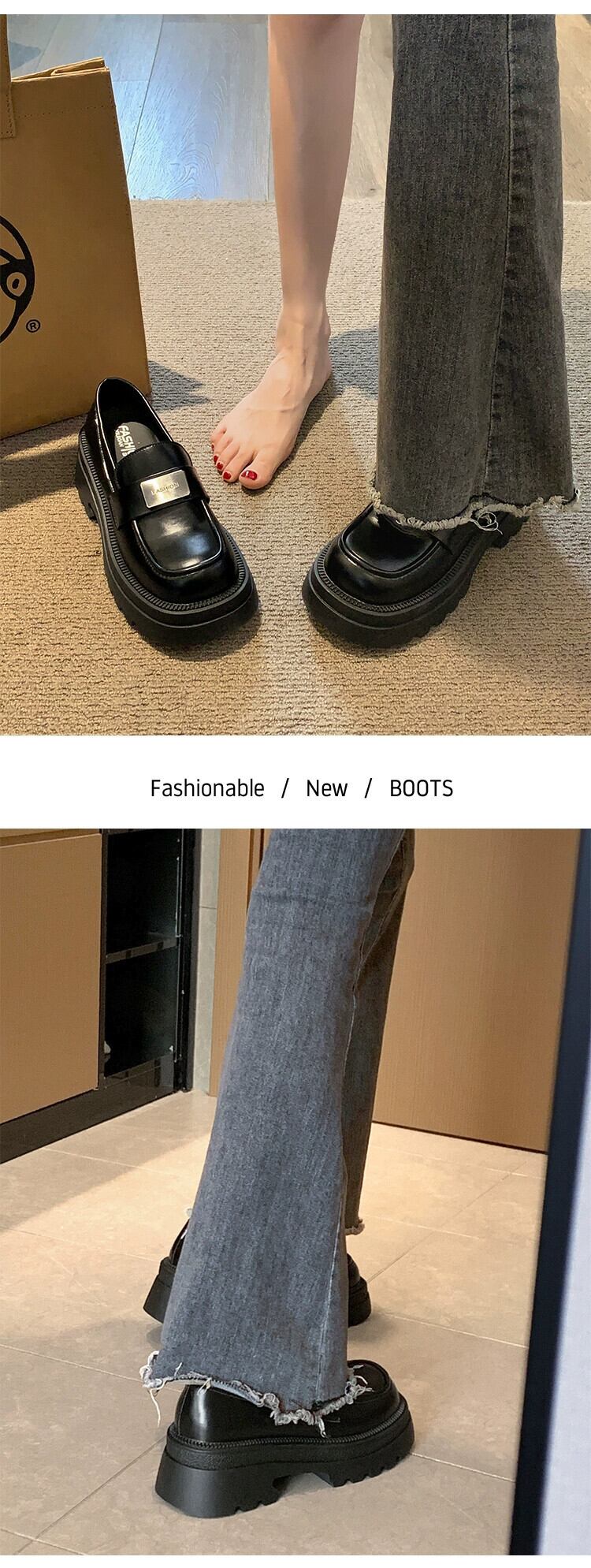 Jia Bujia ローファーの女性の 2024 春と秋のスタイルのシングルシューズ多用途の小さな革の靴黒の厚い底英国スタイルの靴 ブラック スプリング 春物 オータム 秋物 レザー jxjxf44388646212