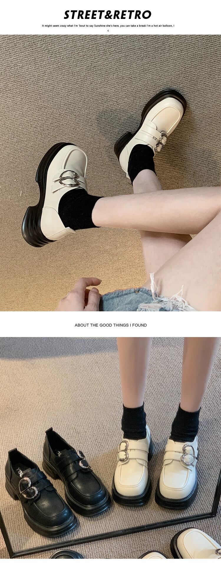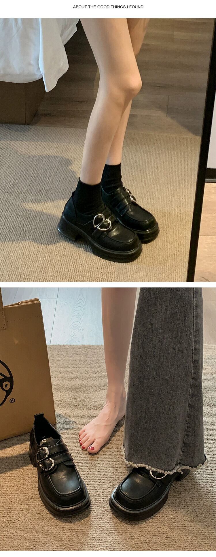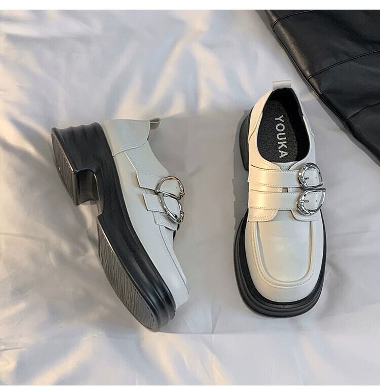 Jia Bufake メリージェーンの靴の女性の 2023 冬のレトロフレンチ多用途ベルトバックル太いヒールの小さな革の靴 シューズ ウィンター 冬物 レザー ハーネス jxjxf82871079157