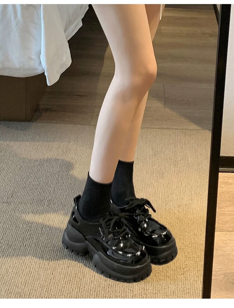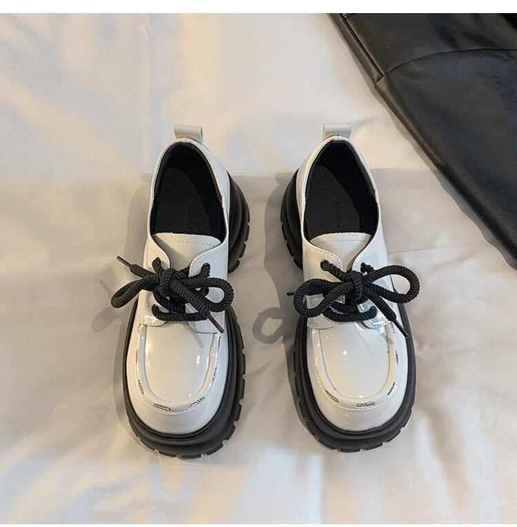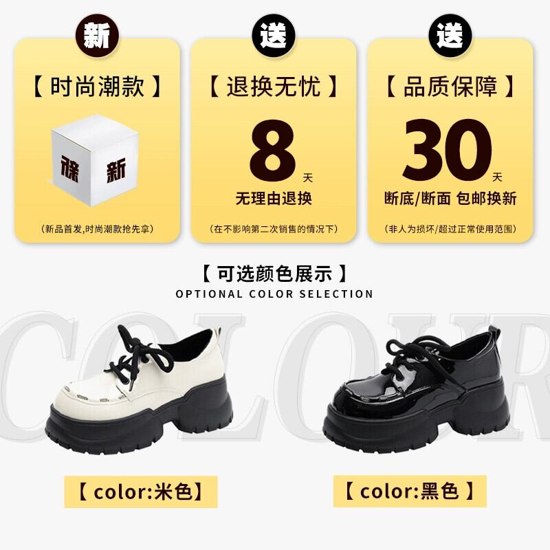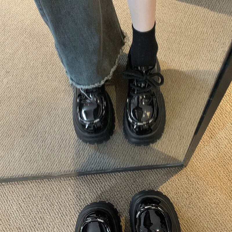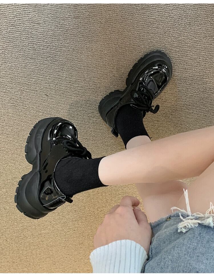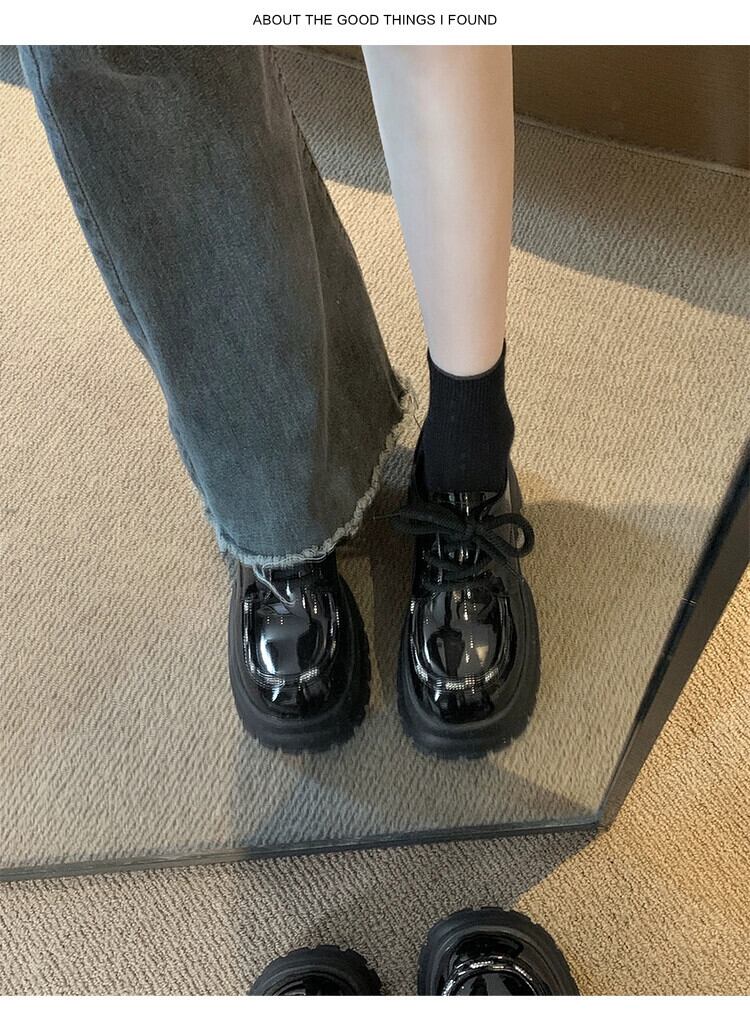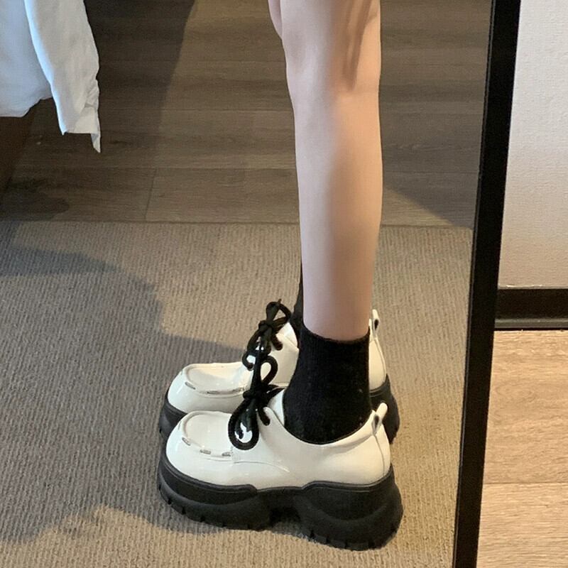 Jia Bujia インターネット有名人の厚底革靴の女性 2023 冬の新スタイル多用途英国スタイルのカジュアルな滑り止めスタイルの靴 シューズ ウィンター 冬物 レザー jxjxf91769169279