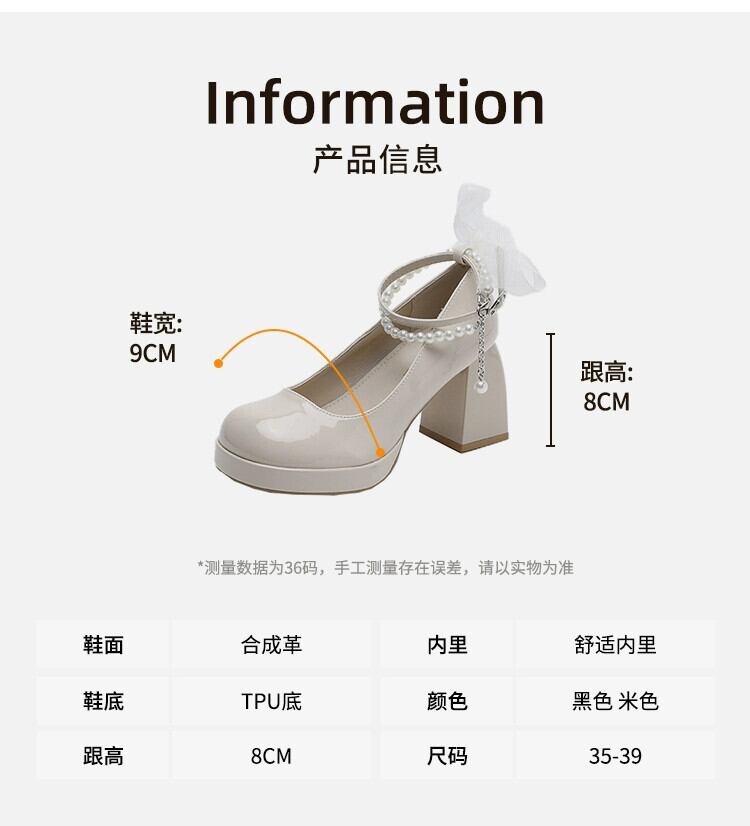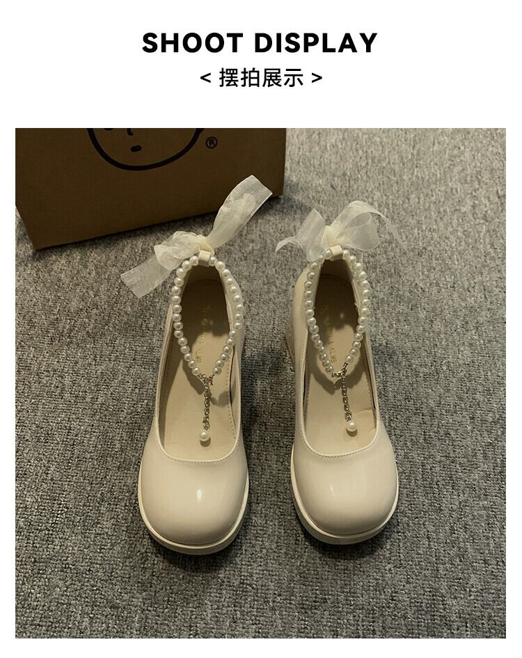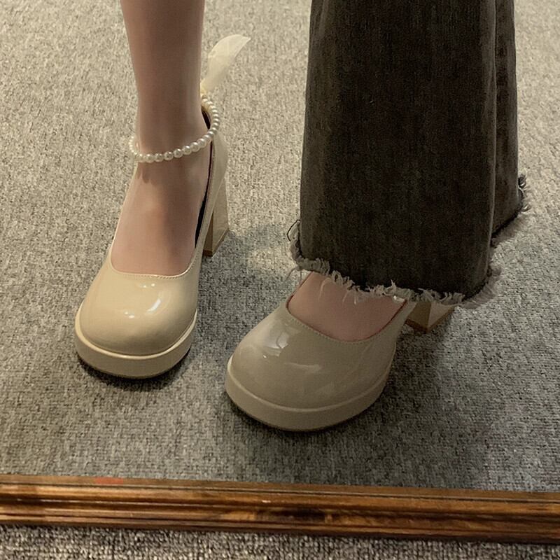 Jia Bufake メリージェーンの靴の女性の 2024 春と秋の新靴気質パールフレンチシングルシューズ太いヒールハイヒール スプリング 春物 オータム 秋物 真珠 jxjxf85529723940