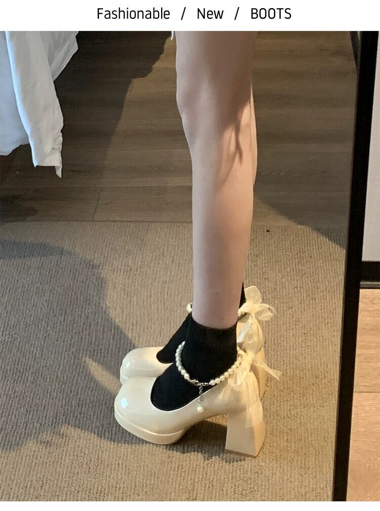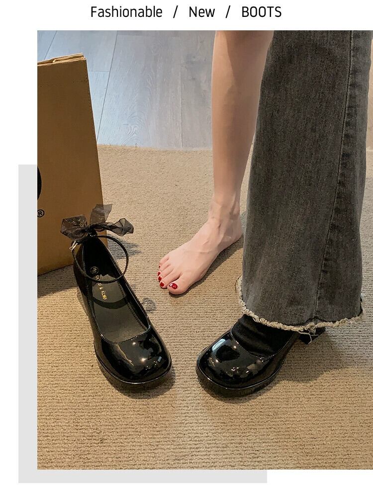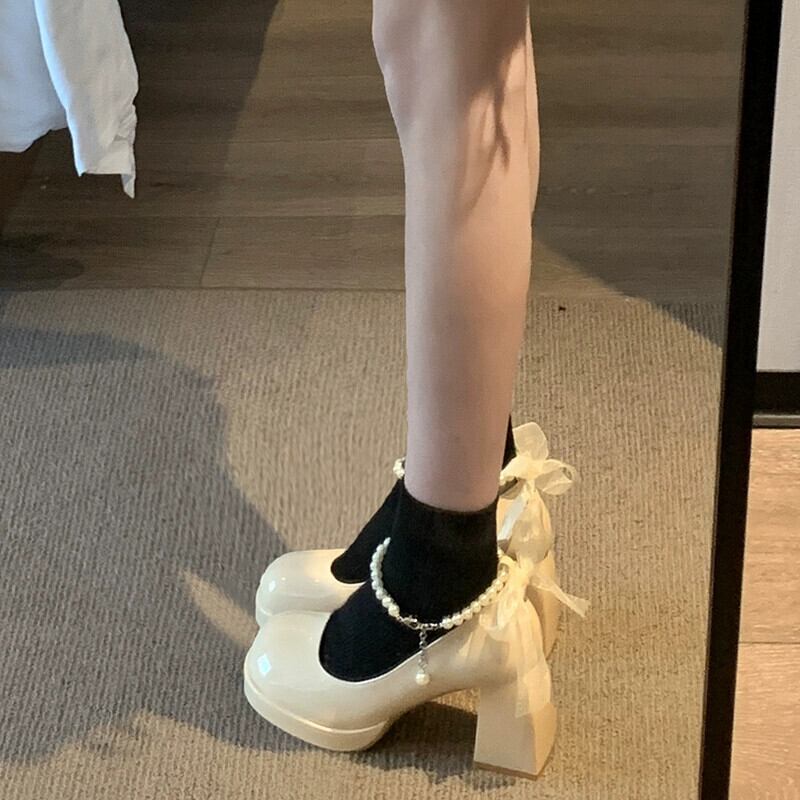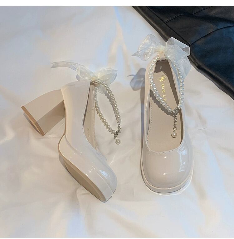 Jia Bufake メリージェーンの靴の女性の 2024 春多用途気質レトロパールスモールヒール小さな革の靴 シューズ スプリング 春物 レザー 真珠 jxjxf70498644029