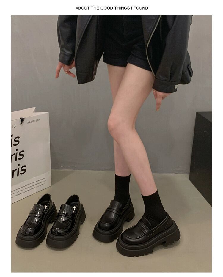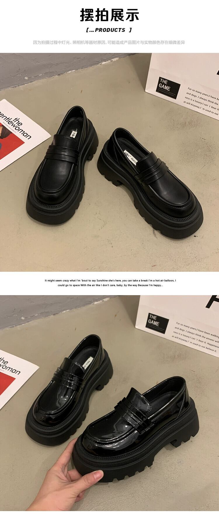 Jia Bufake ローファーレディース 2024 春と秋の新作靴黒厚底英国スタイルの小さな革靴ソフトソールシングルシューズ ブラック スプリング 春物 オータム 秋物 レザー jxjxf6598503985