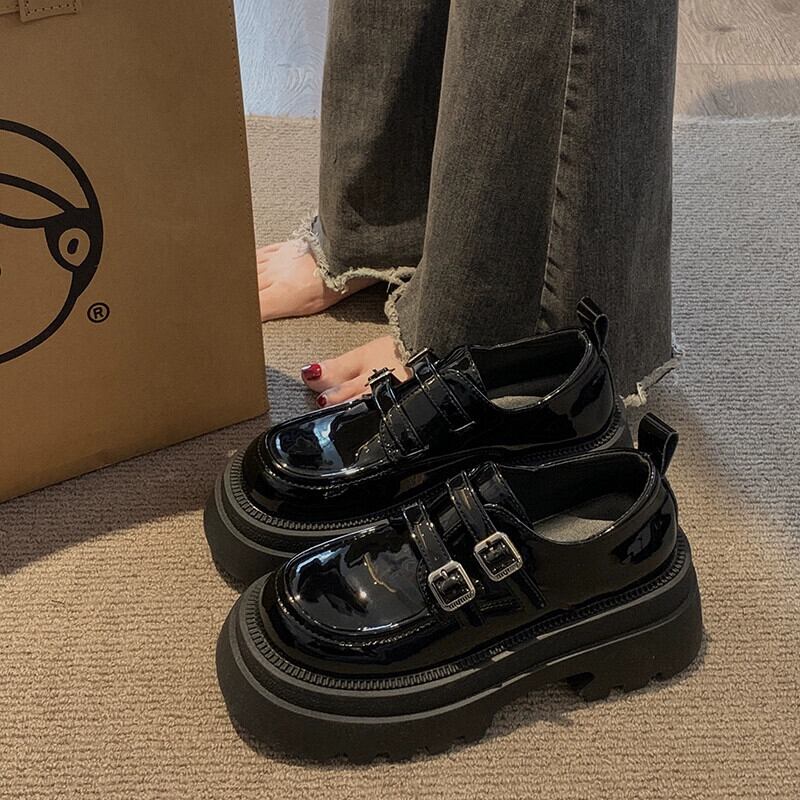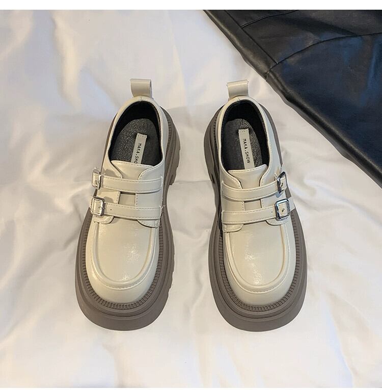 Jia Bufake 厚底ローファー女性 2024 春と秋の新靴レトロ英国スタイルの厚底小さな革靴 シューズ スプリング 春物 オータム 秋物 レザー jxjxf10345067821