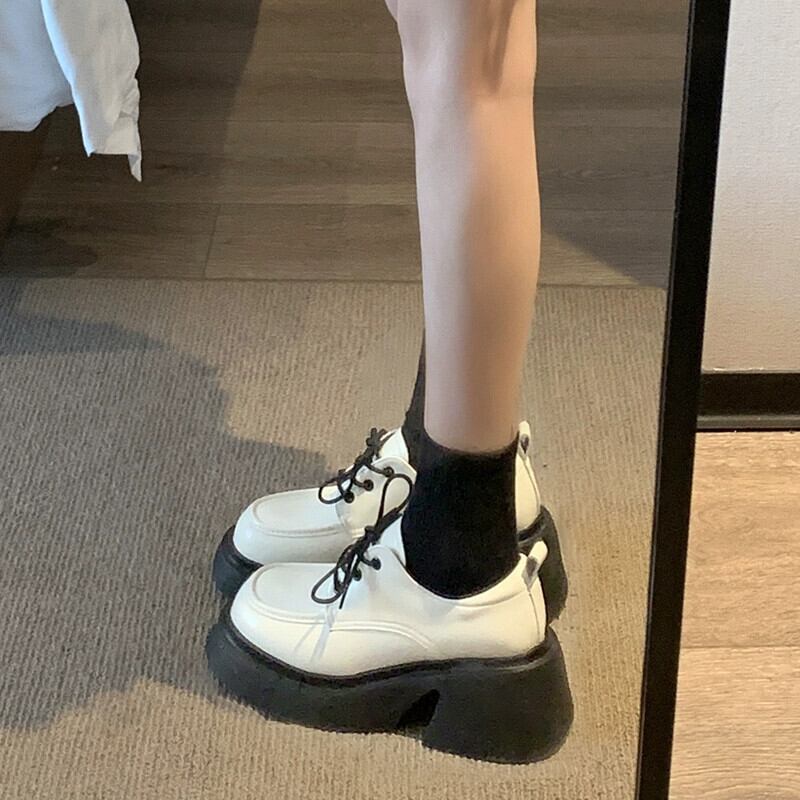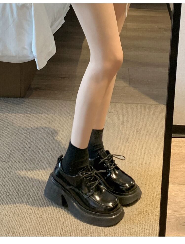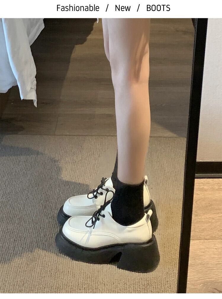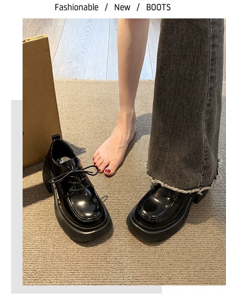 Jia Bujia 冬の小さな革の靴の女性 2023 新しい気質ファッション多用途スクエアトゥ太いヒールカジュアルスタイルの靴 シューズ ウィンター 冬物 レザー スクウェア jxjxf81404429508