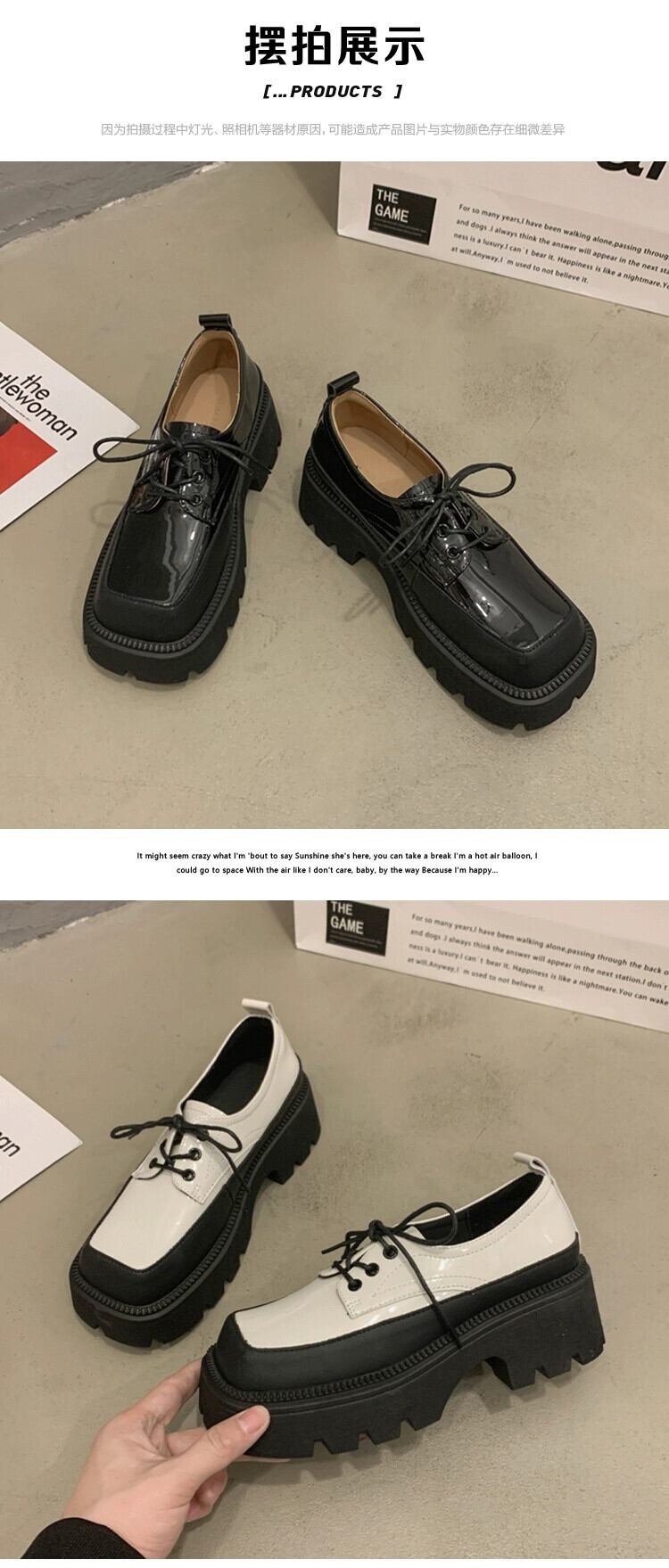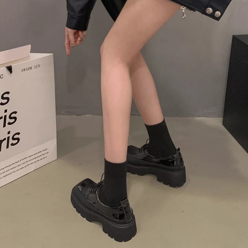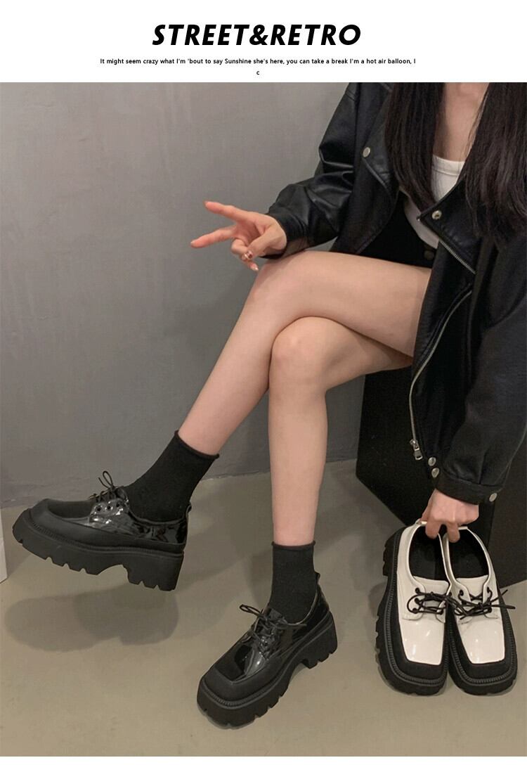 Jia Bujia 女性の革の靴 2023 冬の新スタイルのレトロな英国スタイルのファッショナブルな増加厚底スクエアトゥスタイルの靴 シューズ ウィンター 冬物 レザー スクウェア jxjxf36501632155