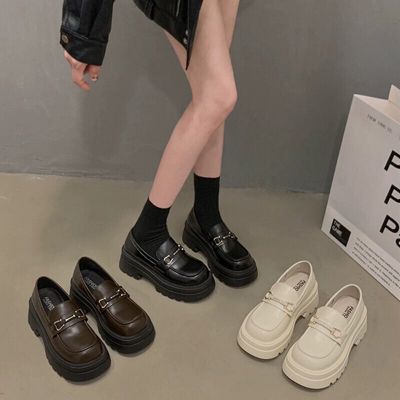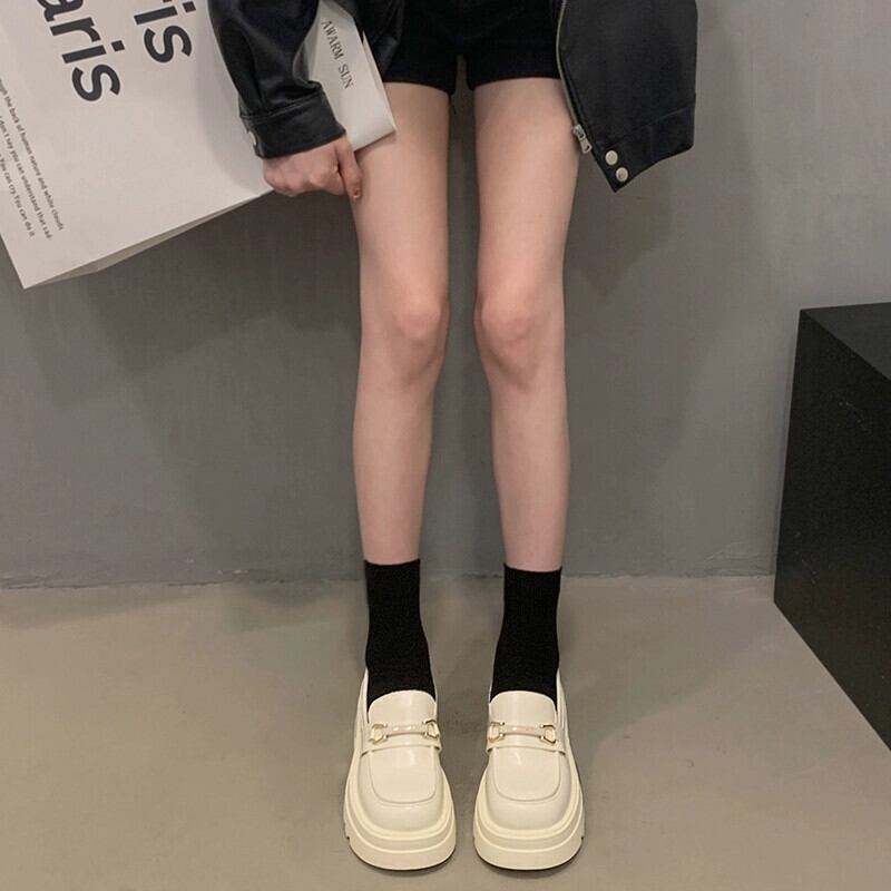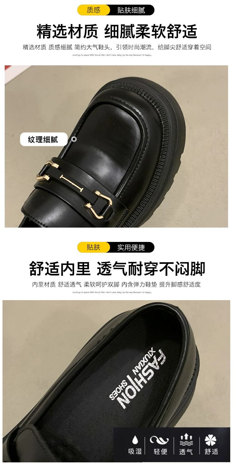Jia Bujia ローファーの女性の 2024 春フレンチスタイルの多用途の小さな革の靴黒の厚底高さシングルシューズ ブラック スプリング 春物 レザー jxjxf23358250486