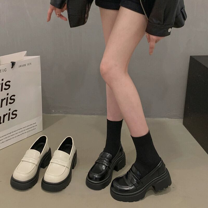 Jia Bufake 小さな革の靴の女性 2024 春と秋の新スタイルの靴レトロな気質太いヒールの小さなローファー シューズ スプリング 春物 オータム 秋物 レザー jxjxf70792520621