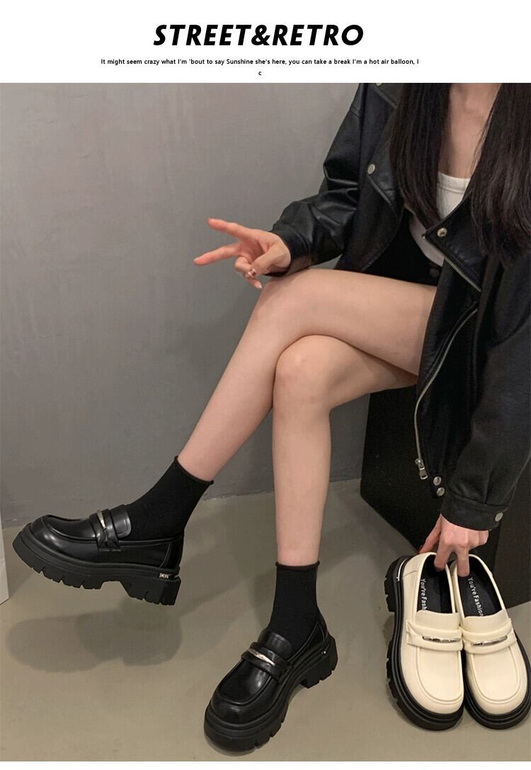 Jia Bufake 小さな革靴の女性 2024 春と秋の新しいインターネット有名人のシングルシューズレトロ多用途厚底英国スタイルのローファー スプリング 春物 オータム 秋物 レザー jxjxf30637345953