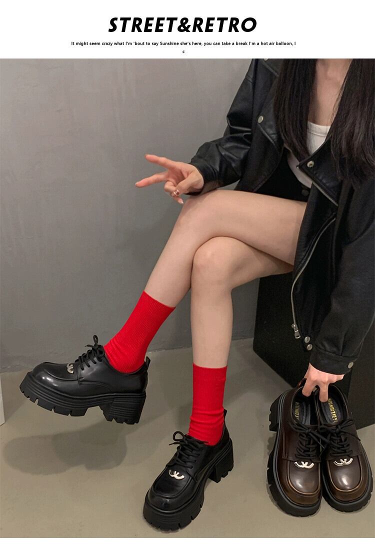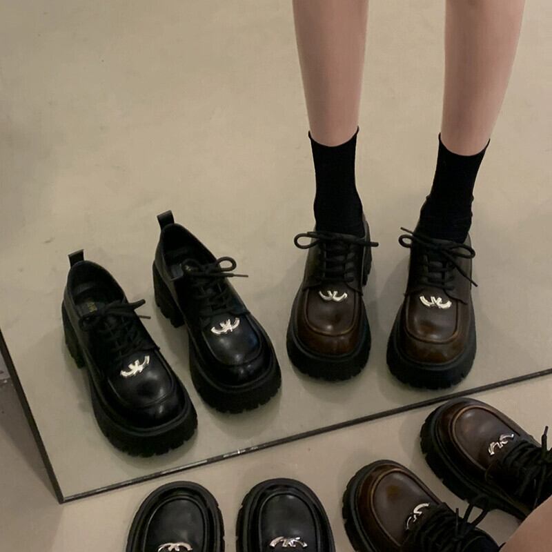 Jia Bufake シングルシューズの女性 2024 春と秋の新スタイルレトロ人気多用途小型太いヒール通勤小さな革靴 スプリング 春物 オータム 秋物 レザー jxjxf9044694801