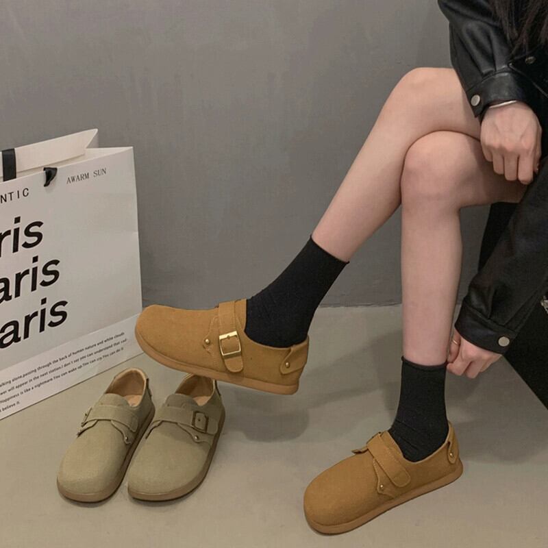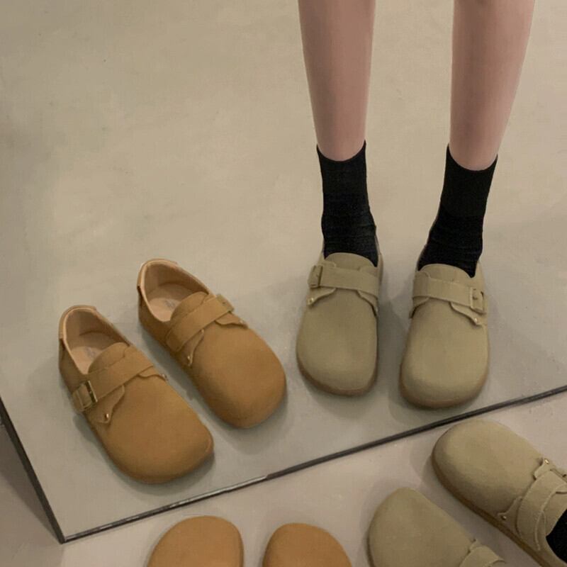 Jia Bufake ビルケンシュトックの靴の女性 2024 春と秋の新スタイルのシングルシューズ多用途レトロベルトバックルソフトソールカジュアルビーニーシューズ スプリング 春物 オータム 秋物 ハーネス jxjxf65825019085