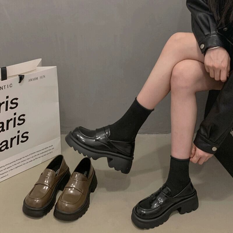 Jia Bufake 厚底小さな革の靴の女性 2024 春の新黒の靴多用途レトロ厚いヒールカジュアルローファー シューズ ブラック スプリング 春物 レザー jxjxf46699682969