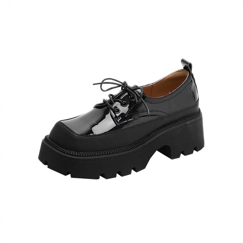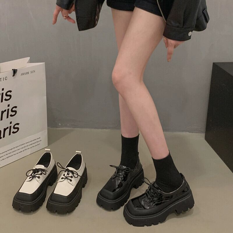 Jia Bujia スクエアトゥシングルシューズ女性 2024 春の新ファッションレトロ多用途小型厚底スタイルの小さな革靴 スプリング 春物 レザー スクウェア jxjxf7672338402