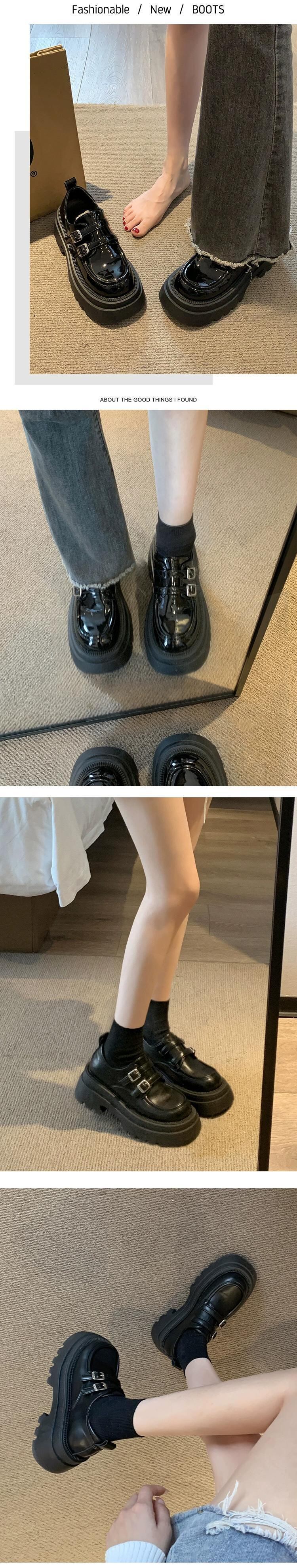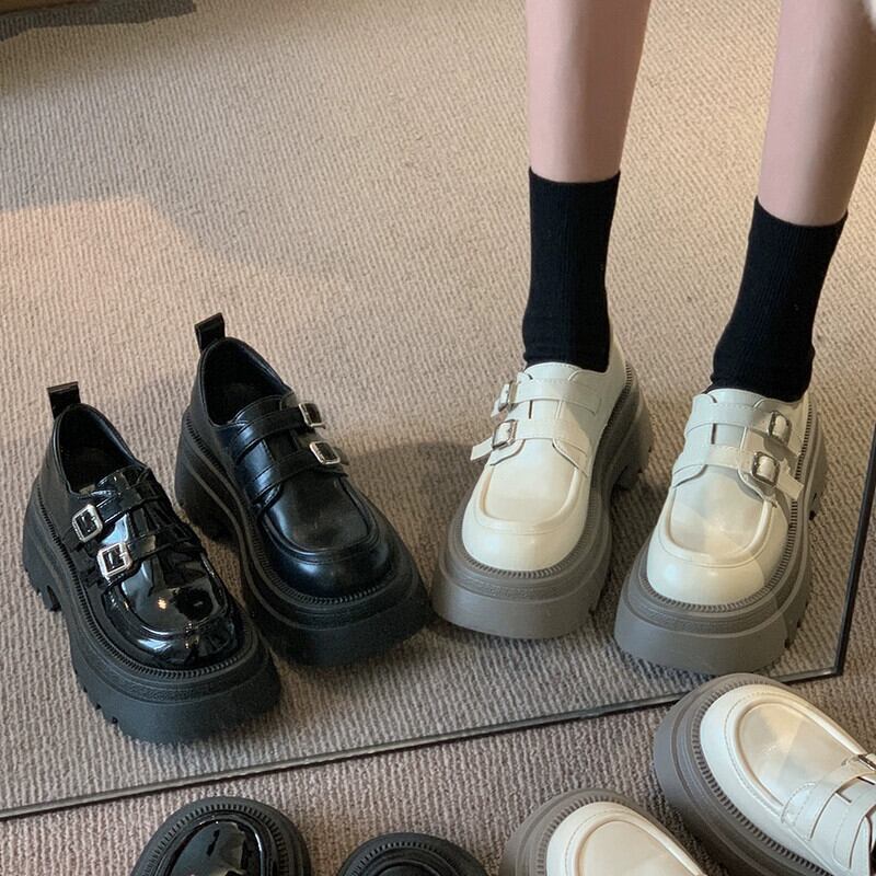 Jia Bujia ローファー女性の 2024 春と秋のスタイルの ese 靴多用途小型厚底ラウンドトゥ小さな革靴 シューズ スプリング 春物 オータム 秋物 レザー jxjxf41308104255