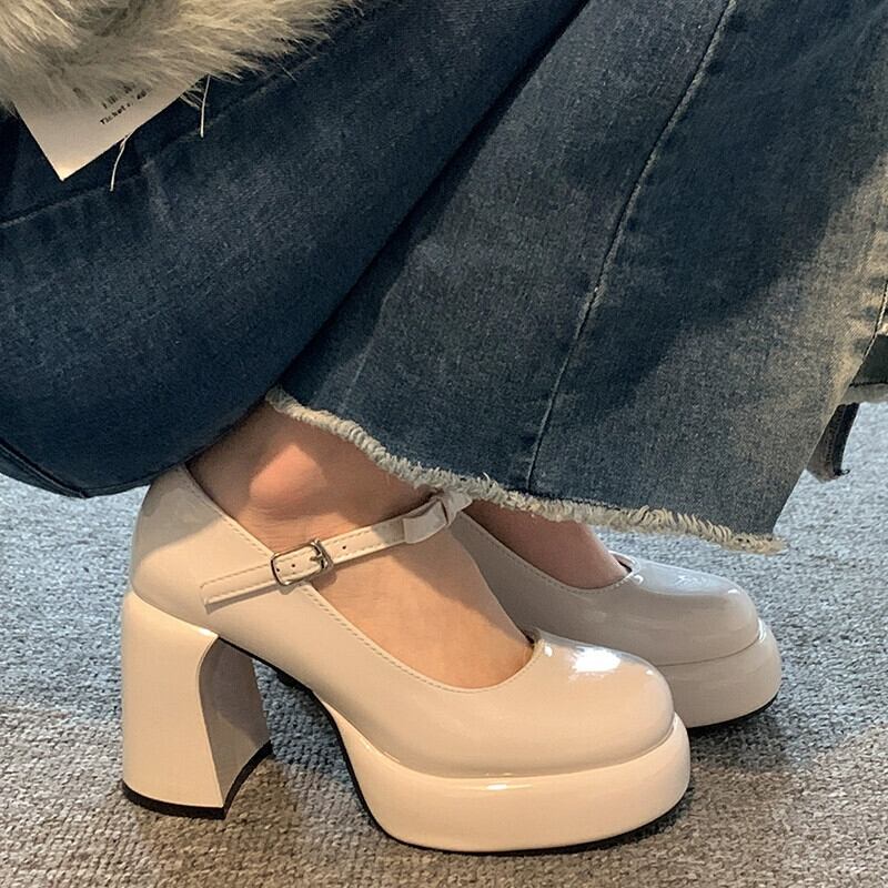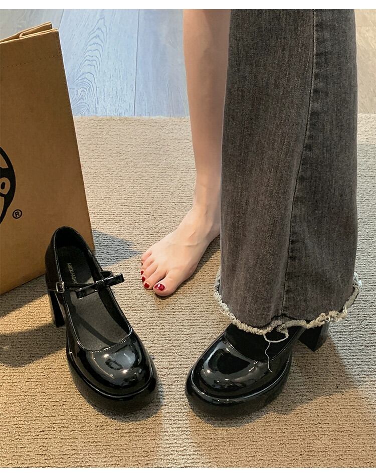 Jia Bufake ハイヒールの靴の女性 2024 春の新靴シングルシューズ気質小さな厚いヒールメリージェーンの靴 スプリング 春物 jxjxf43815924639