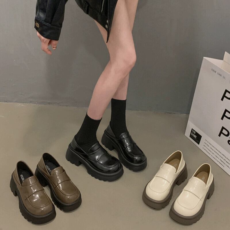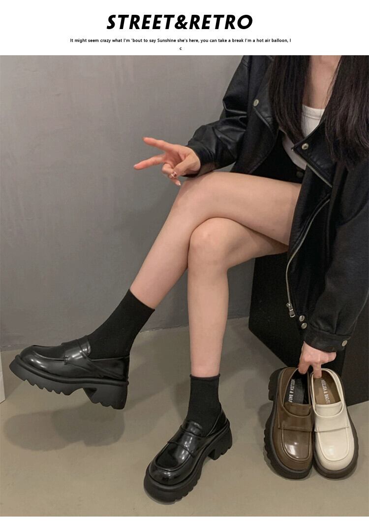 Jia Bufake ローファー女性の 2024 春厚底シングルシューズ多用途小さなレトロ英国スタイルの小さな革靴 スプリング 春物 レザー jxjxf36861556259