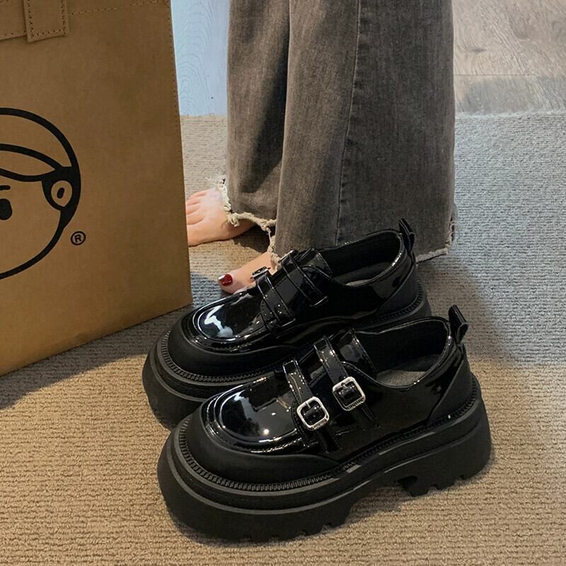 Jia Bujia ローファー女性の 2024 春と秋のスタイルのシングルシューズ多用途小型厚底レトロ小さな革靴 スプリング 春物 オータム 秋物 レザー jxjxf31865330165