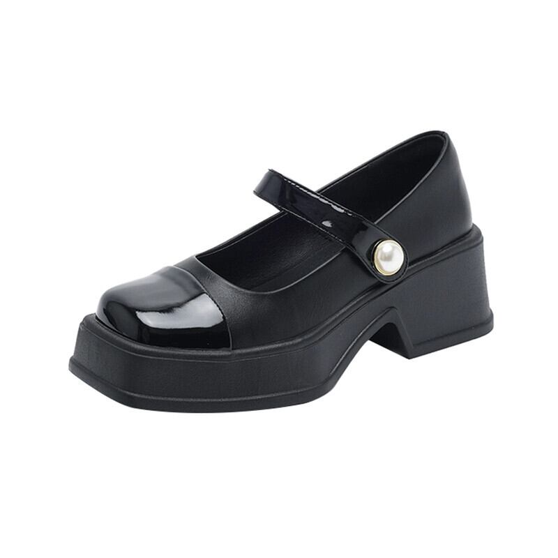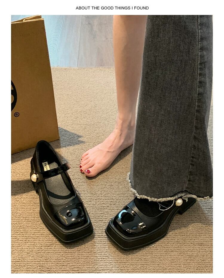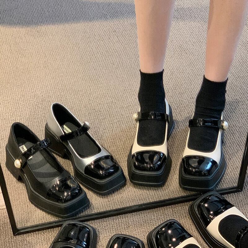 Jia Bujia インターネット有名人のシングルシューズの女性 2024 春の新ファッションレトロ多用途厚底スクエアトゥメリージェーンシューズ 靴 スプリング 春物 スクウェア jxjxf87309174167