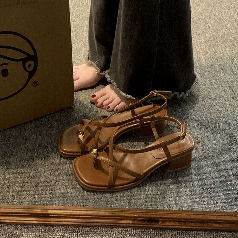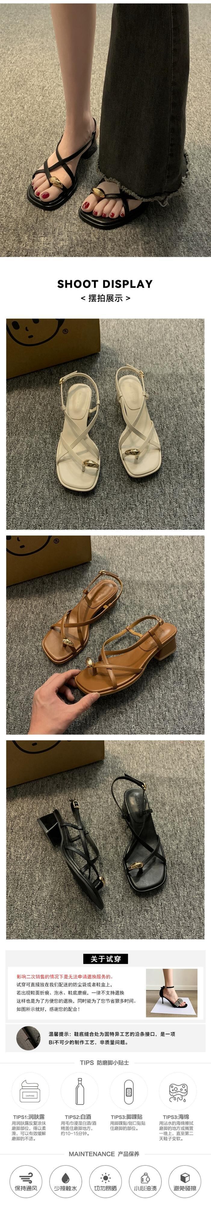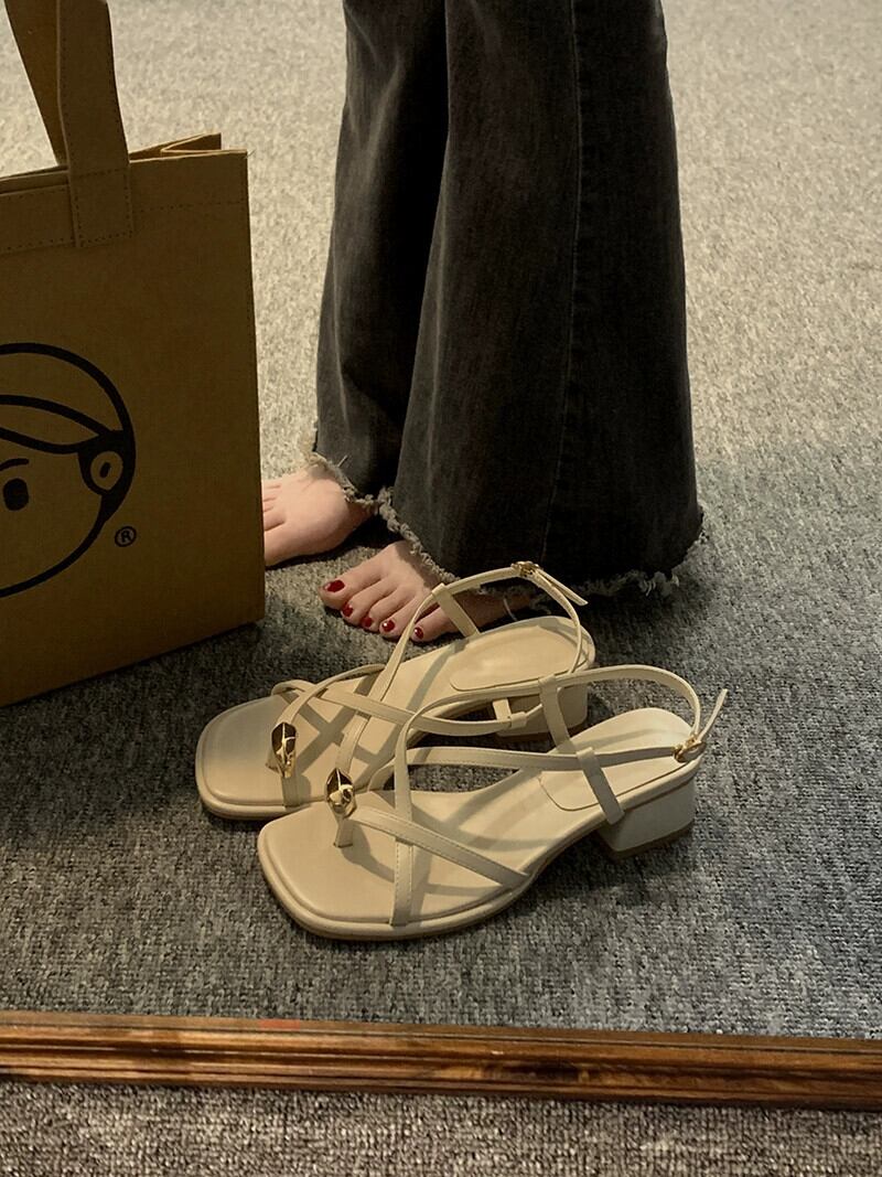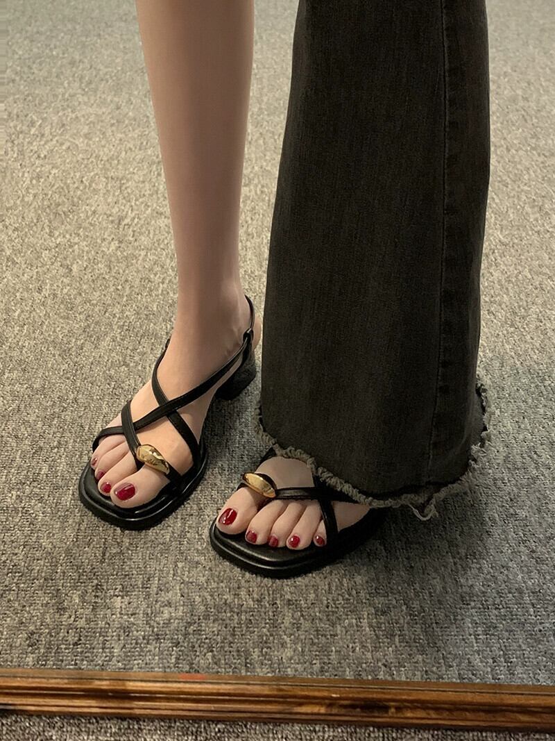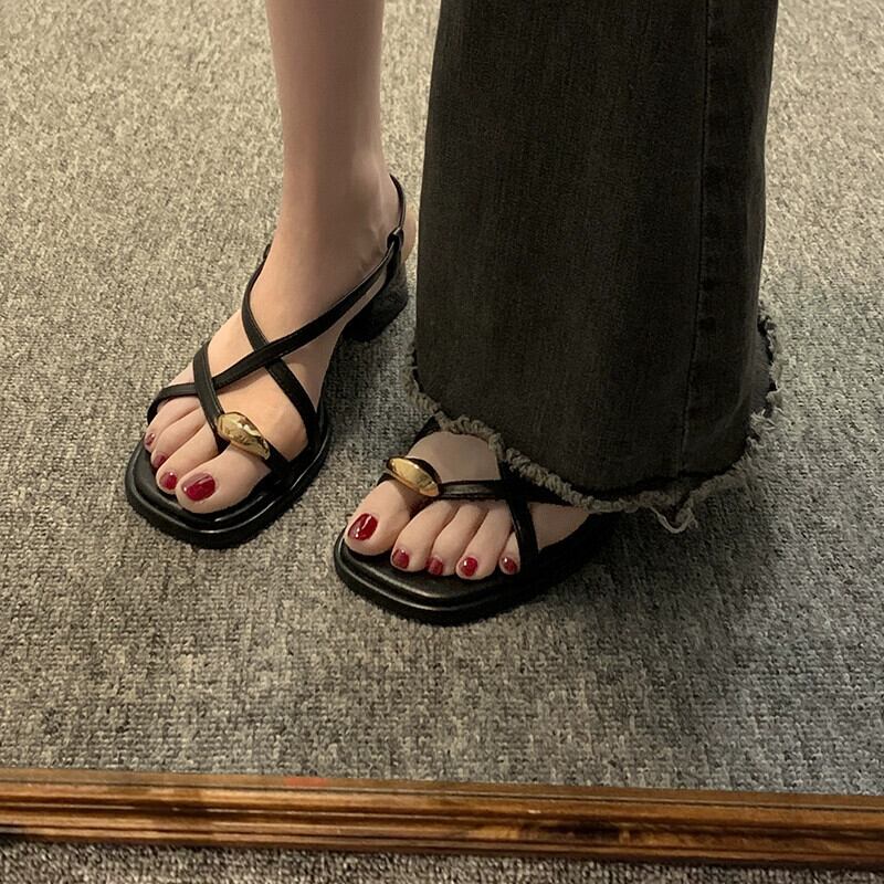 Jia Bujia Roman 靴の女性の 2024 春インターネット有名人レトロメタルフレンチ厚いヒールサンダル シューズ スプリング 春物 jxjxf4822872937