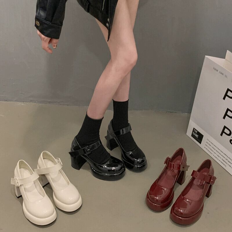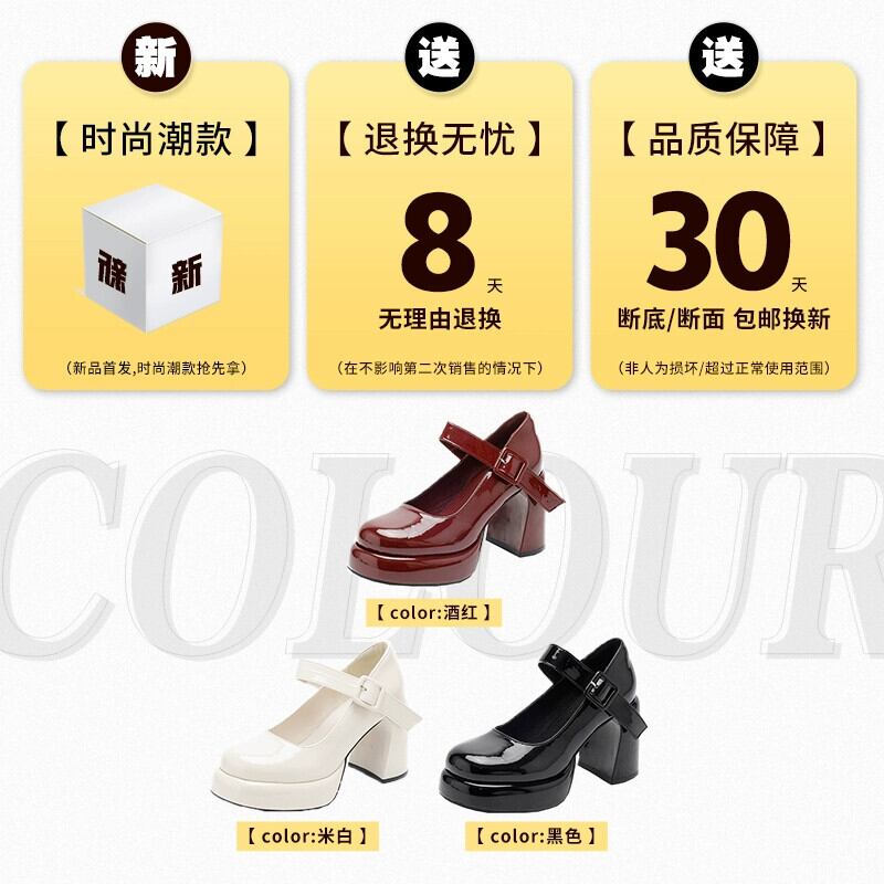 Jia Bujia インターネット有名人のシングルシューズの女性 2024 春の新スタイルレトロマッチングスカートハイヒールメリージェーン靴 スプリング 春物 jxjxf21891899201